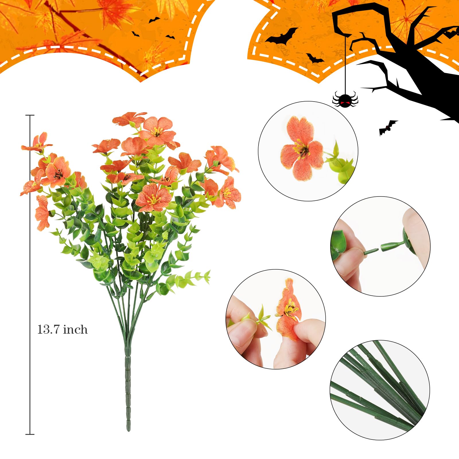 Realistic Artificial Flowers - Fall Flowers are made of PE plastic(ECO-Friendly) and high-quality silk cloth,100% SAFE.Each flower come as close to real as can be, offer true-to-life petal and foliage textures.Honestly unless you stop and touch them people will think they're real,they even fooled the bees