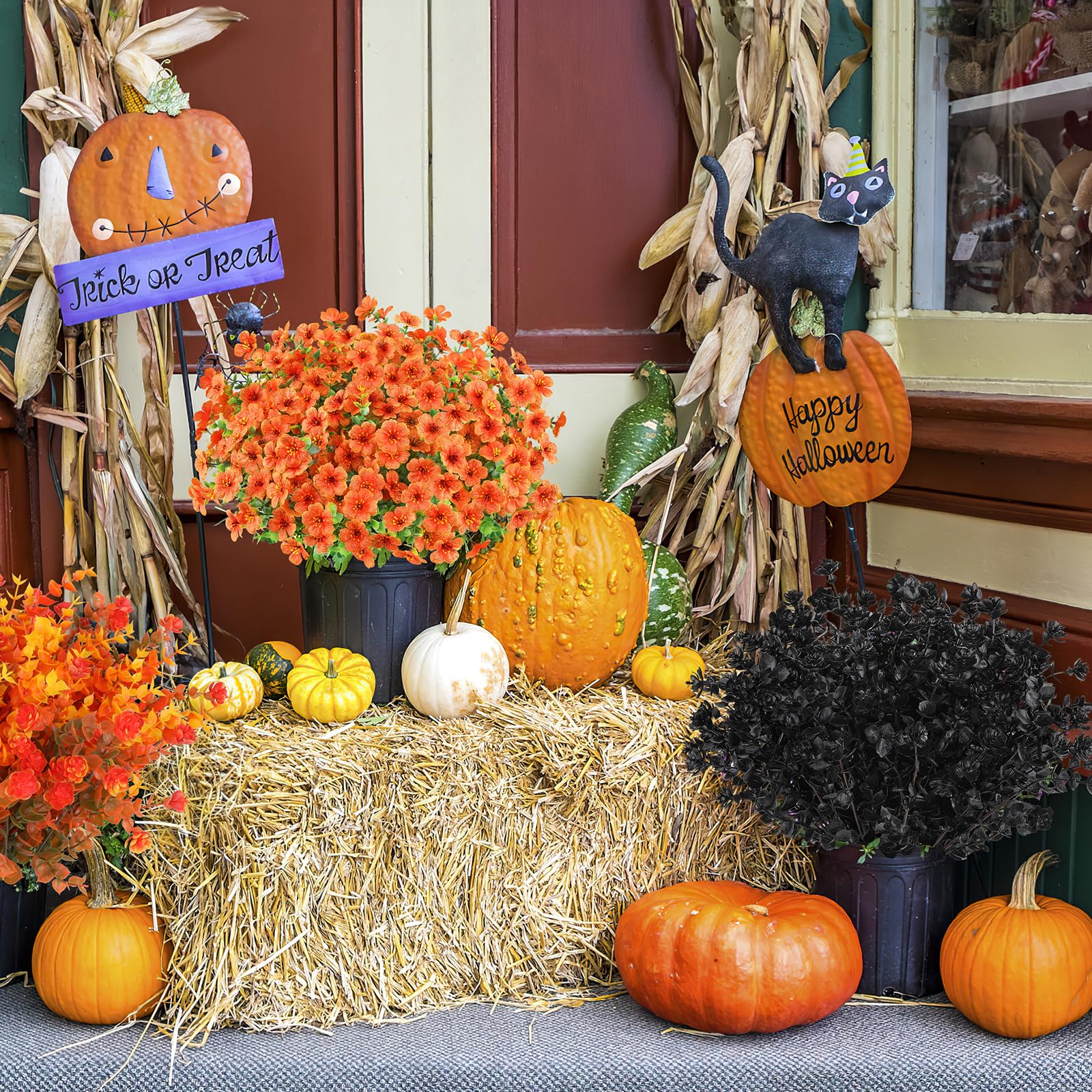 Perfect for Outdoor/Indoor - Plastic flowers are ideal for outdoor porches,walkway,terraces windox box,front yard,pots,hanging planters,gardens,landscape,windowsills, allowing you to have beautiful colors all year around.Also suit for birthdays, Halloween decor, memorial place or grave,they can live anywhere and have withstood heavy rain storms and winds.