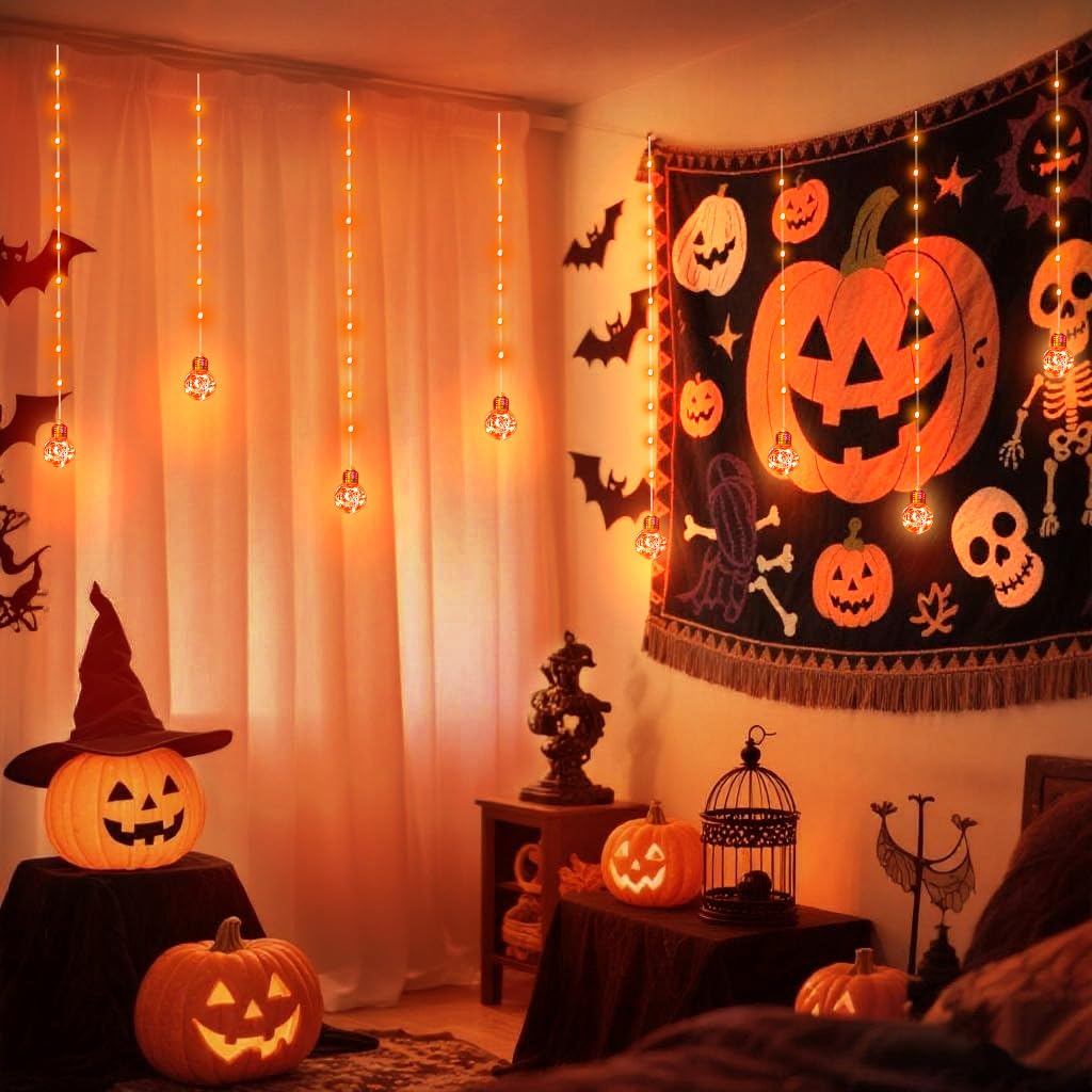 Easy to Install: Extremely lightweight, with built in hooks, the halloween curtain lights is easy to be hung virtually anywhere. Easily slides along the curtains or backdrop, create walls of cascading light with little effort