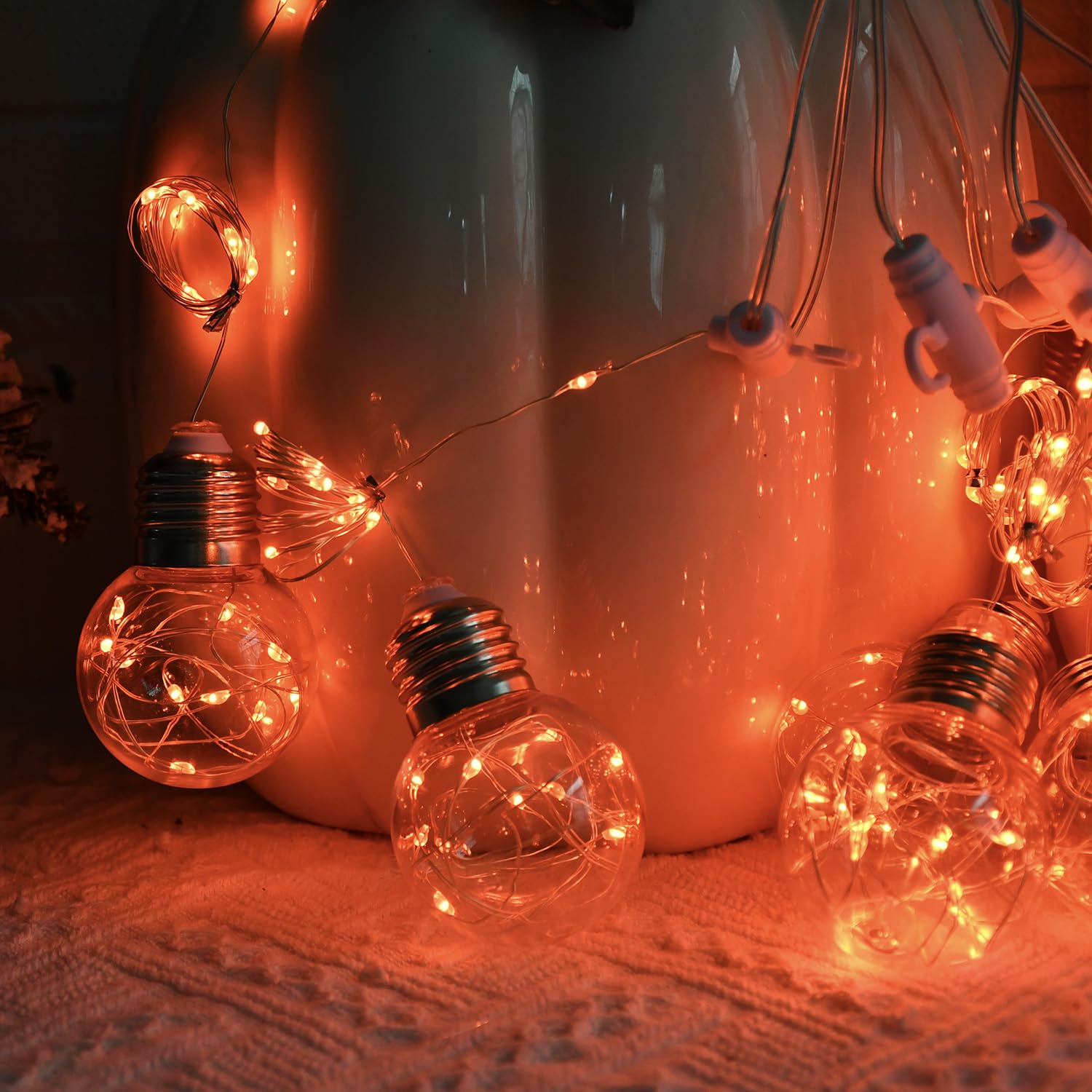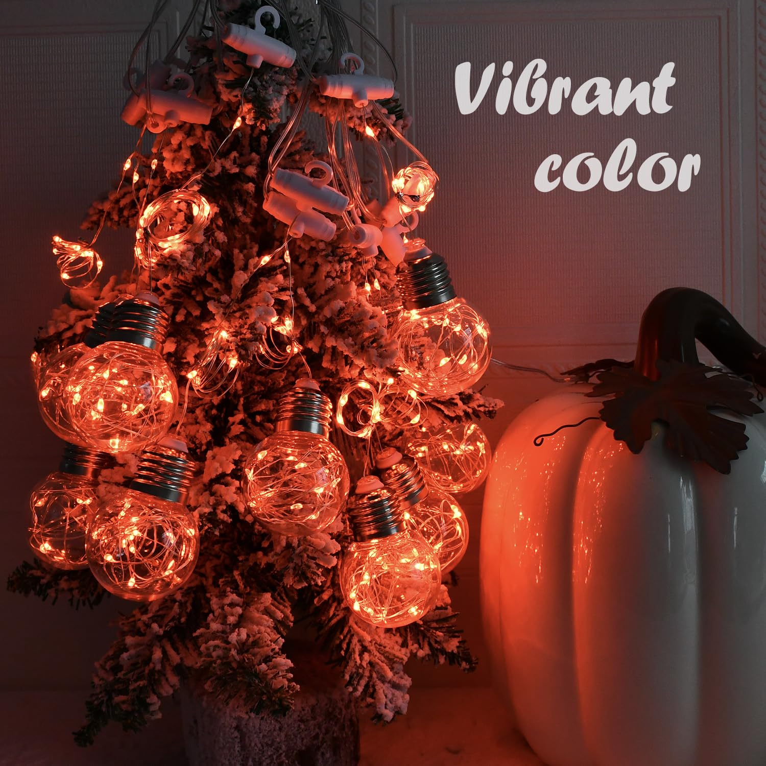 [ 9.8 x 3.3ft ] Wishing Ball Curtain Lights: The edison look bulbs are filled with fairy-like orange LEDs, hanging on silver wire curtain lights, to create a soft glow and provide a joyful and hauting ambience for halloween party & events