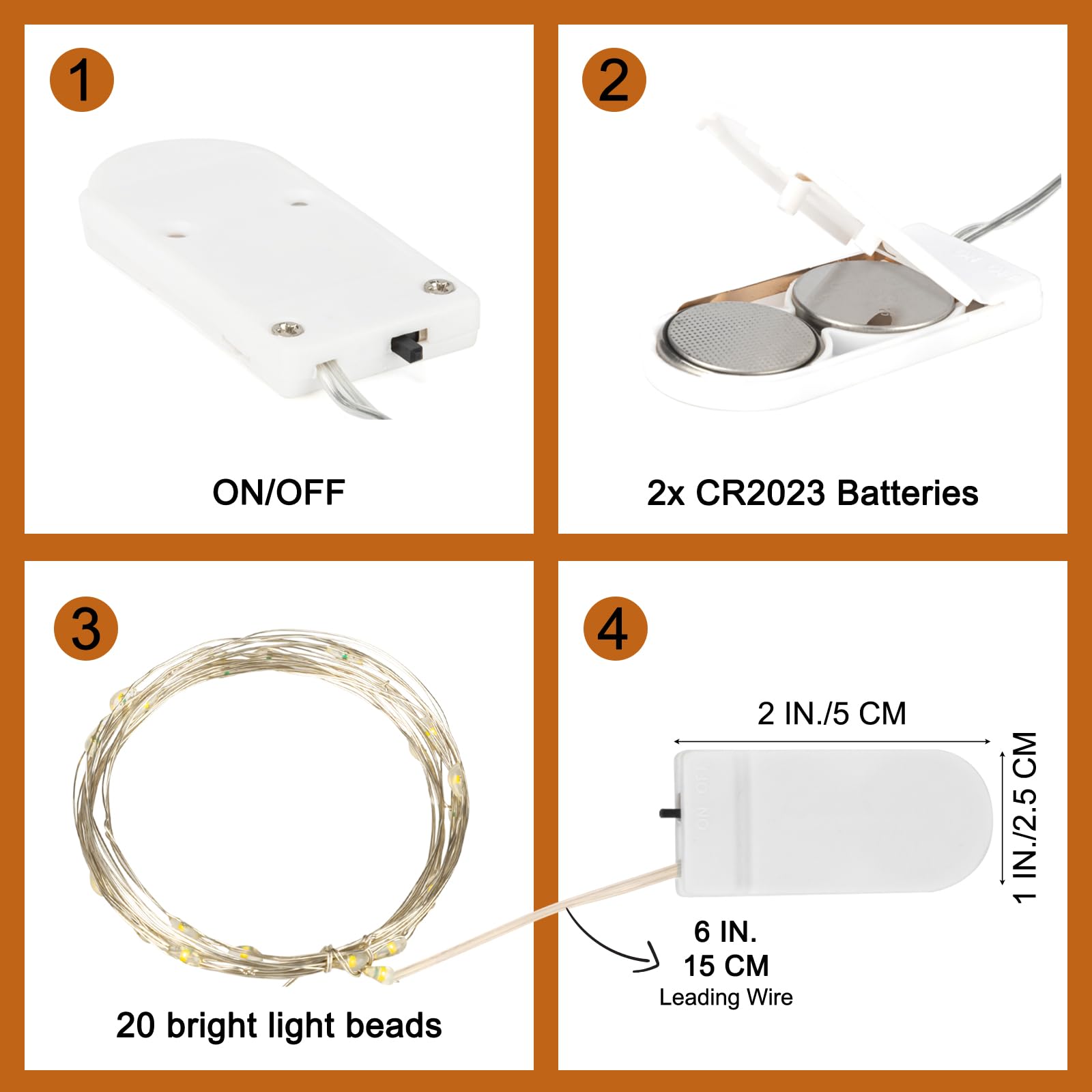 Energy-Saving: These battery operated fairy lights are powered by 2 CR2032 batteries, low voltage, won't overheat even with a long time of use, are easy to touch and easy to use, no glare, soft and warm light to protect your eyes