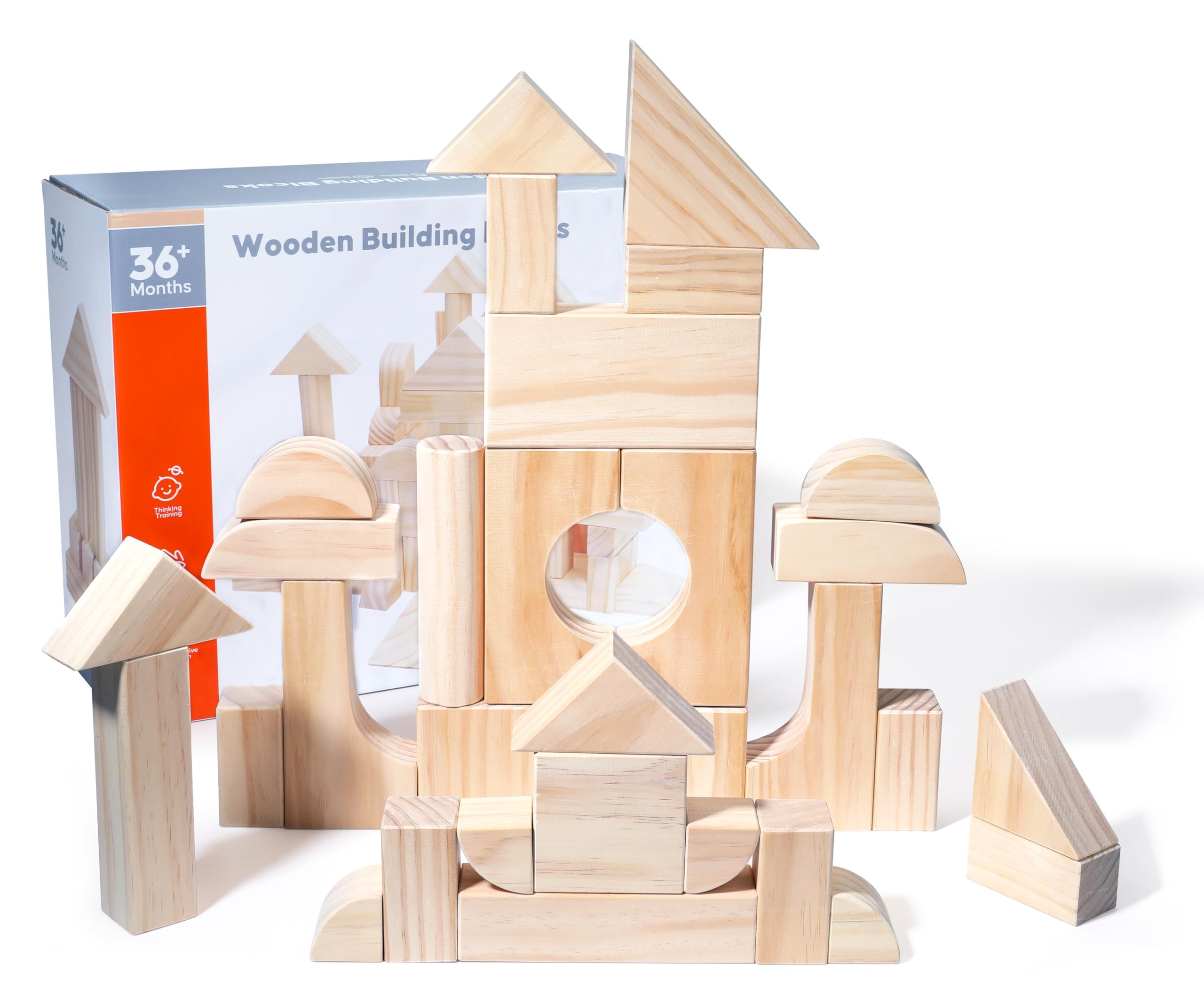Exceptional Quality & Value : This building blocks toy is made of high quality wood, BPA Free and non-toxic finishes and paints ,sanded smooth, and natural finished with safe, manufactured to the highest grade. Ideal for introducing early math concepts, including shapes, parts-to-whole, and sorting.