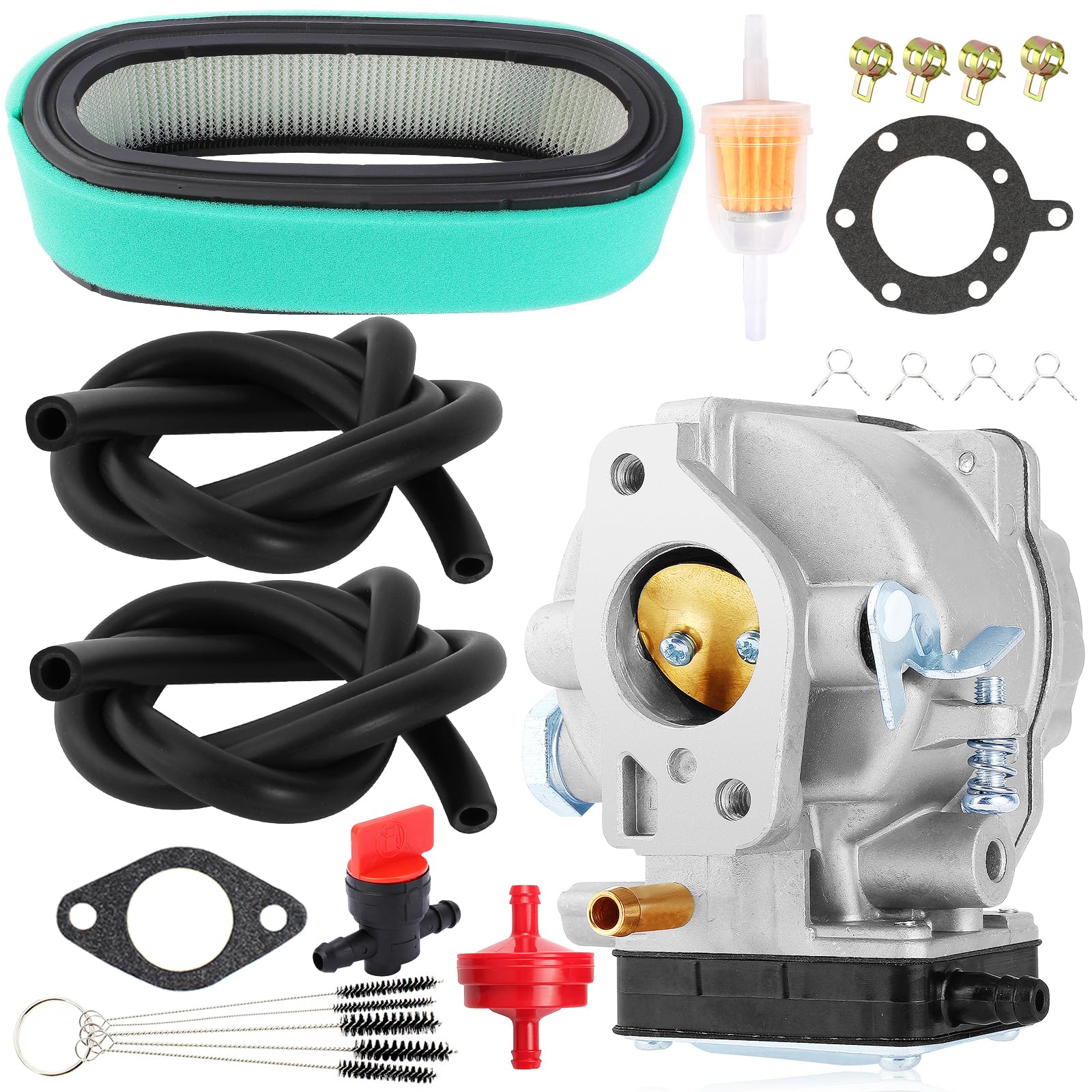Package includes: 1 x carburetor. 1 x carburetor cleaning brush. 1 x fuel shut off valve. 1 x filter. 1 x foam pre filter. 2 x mount gaskets. 2 x fuel filters. 2 x fuel lines. 8 x clamps.