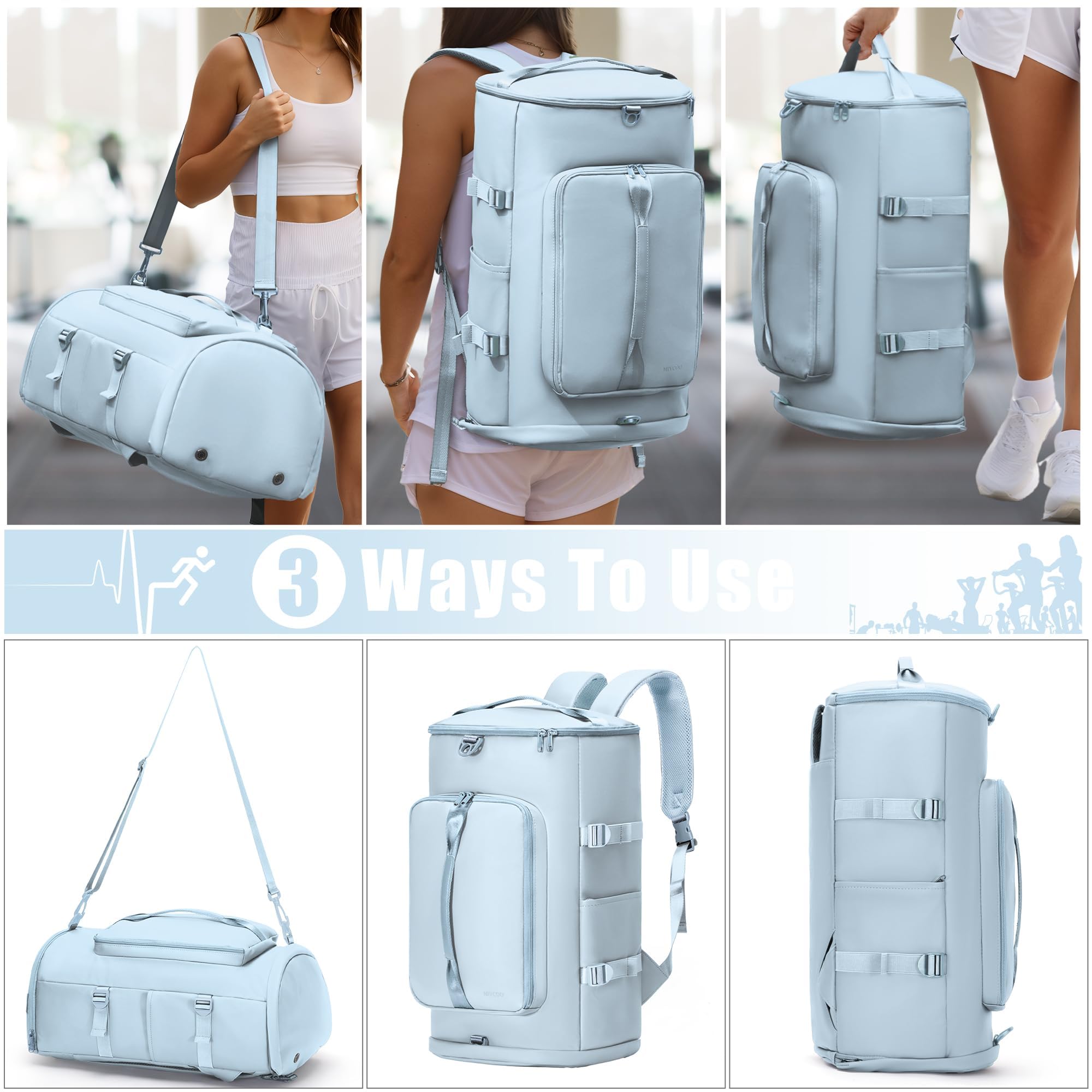 3 Carrying Options: This gym bag's shoulder straps can be hidden. With a removable crossbody shoulder strap, so you can switch the way you use it: as a backpack, as a crossbody travel bag, or as a handbag