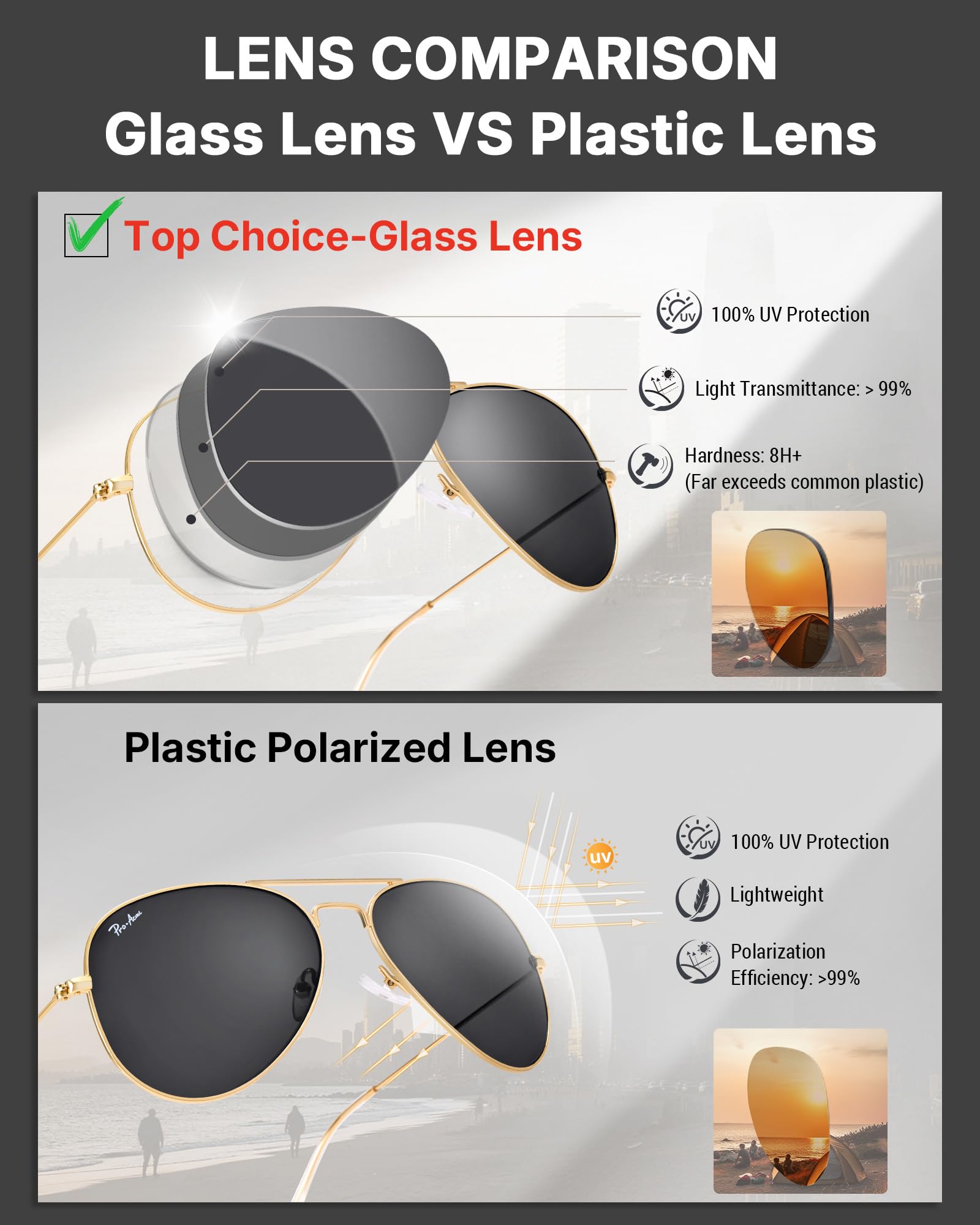 HD Glass Lenses Sunglasses: Scratch-resistant aviators - timeless design for daily wear & night out. You will always have maximum visibility, which is made to optimize clarity while minimizing distortion and glare.