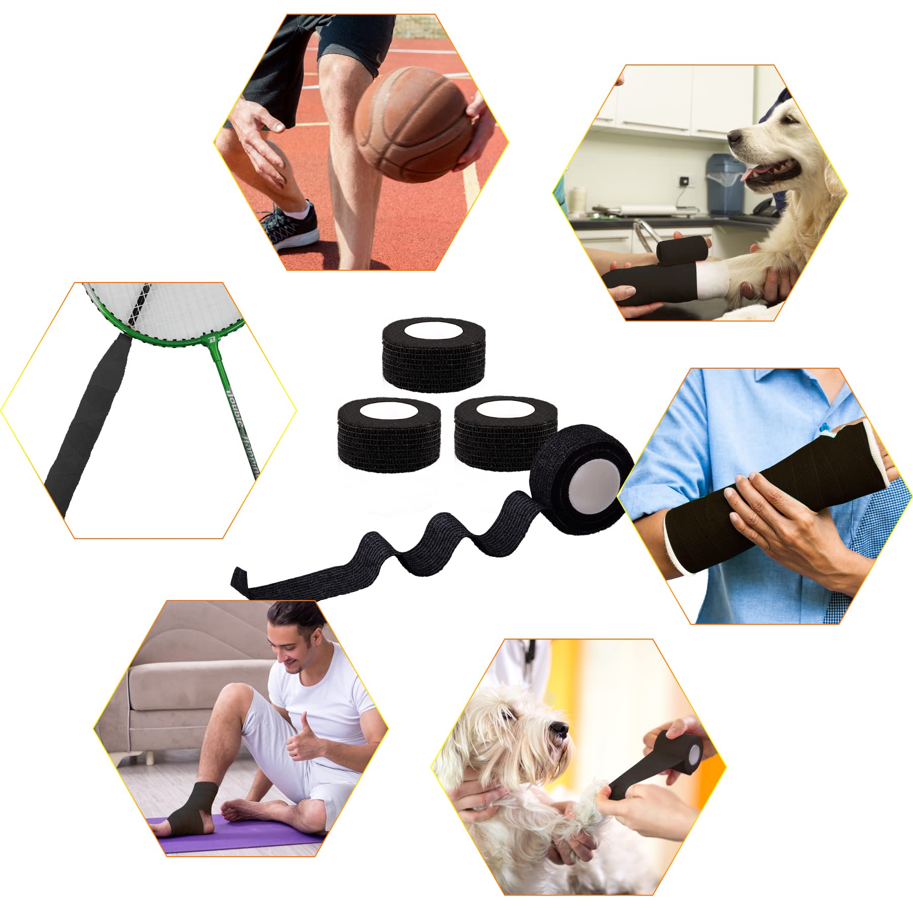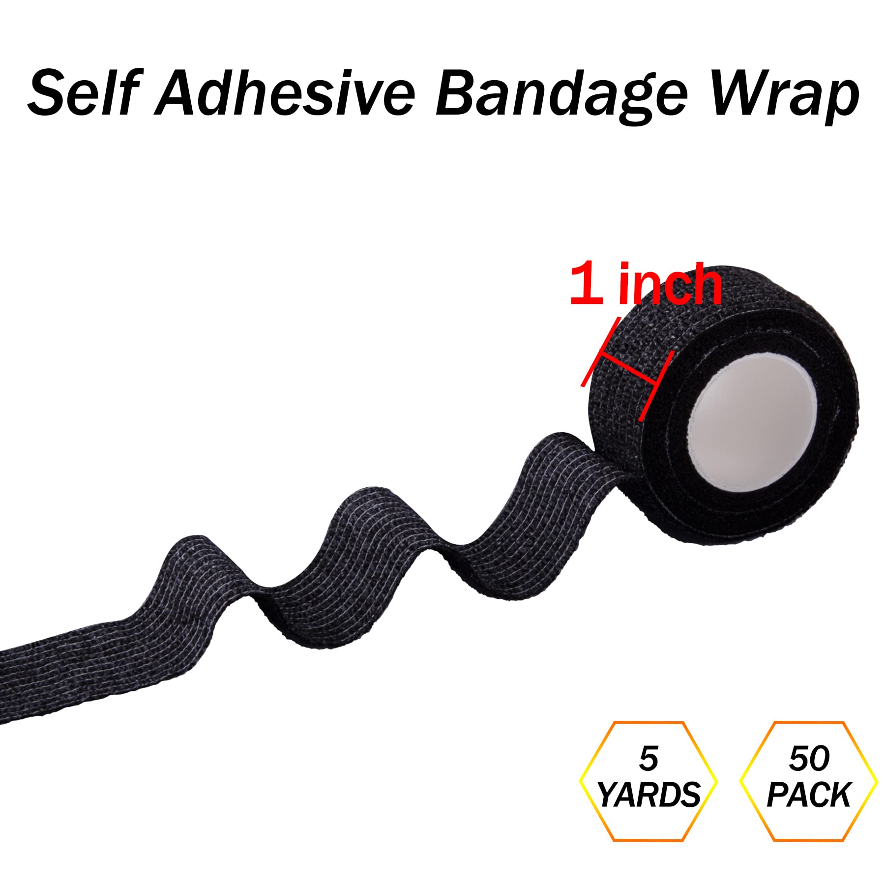Package include: 50 rolls 1 inch black self adhesive bandage wrap, 5 yards per roll, large quantity black self adhesive wrap for you