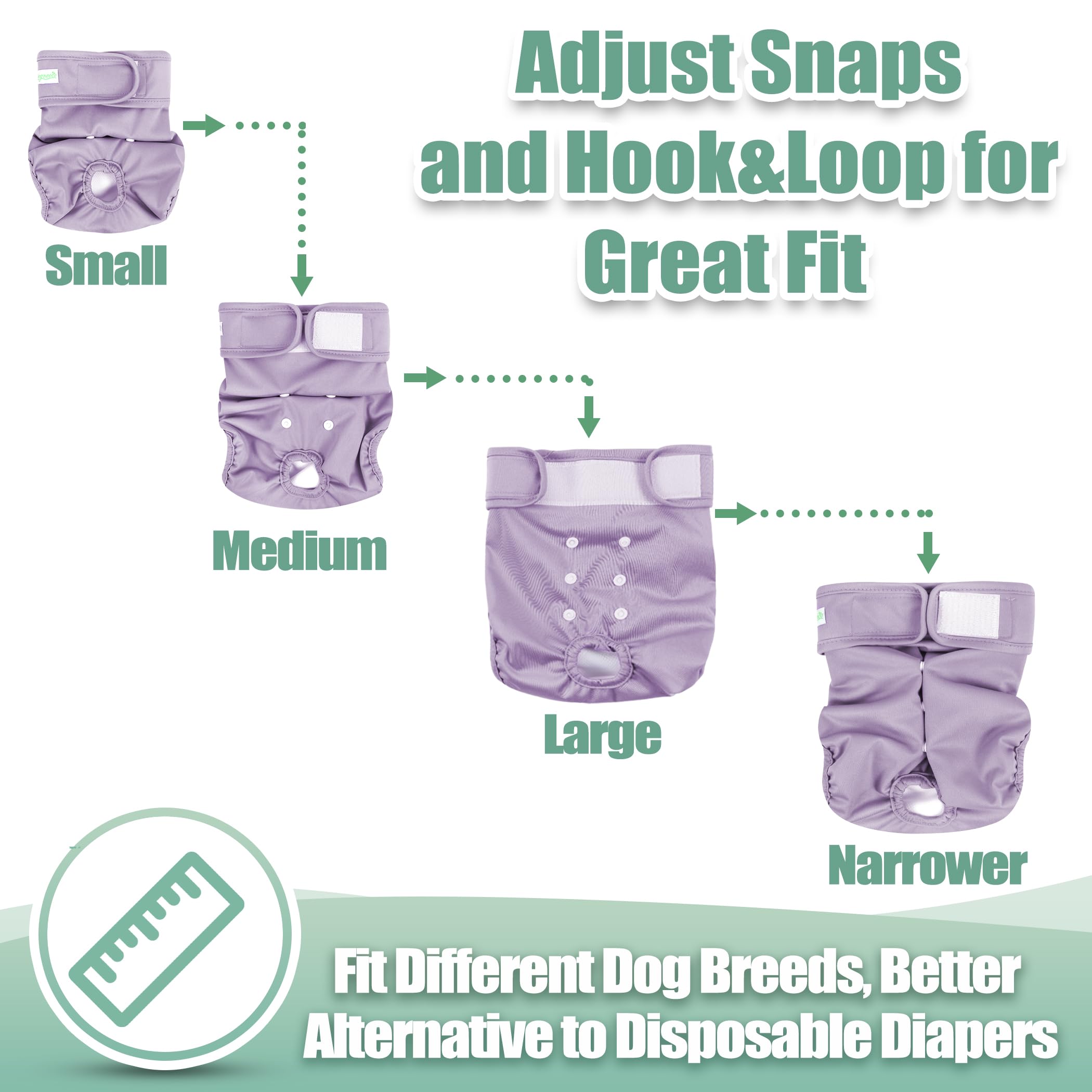 Washable dog diapers- Soft & Comfortable Diapers for Dogs - To increase your dog's comfort and acceptance our diaper wraps have no "crinkly" or uncomfortable texture that causes many dogs to dislike the ordinary disposable diapers. Hook & loop closures are quick and easy to put on and won't stick to your pet's fur.