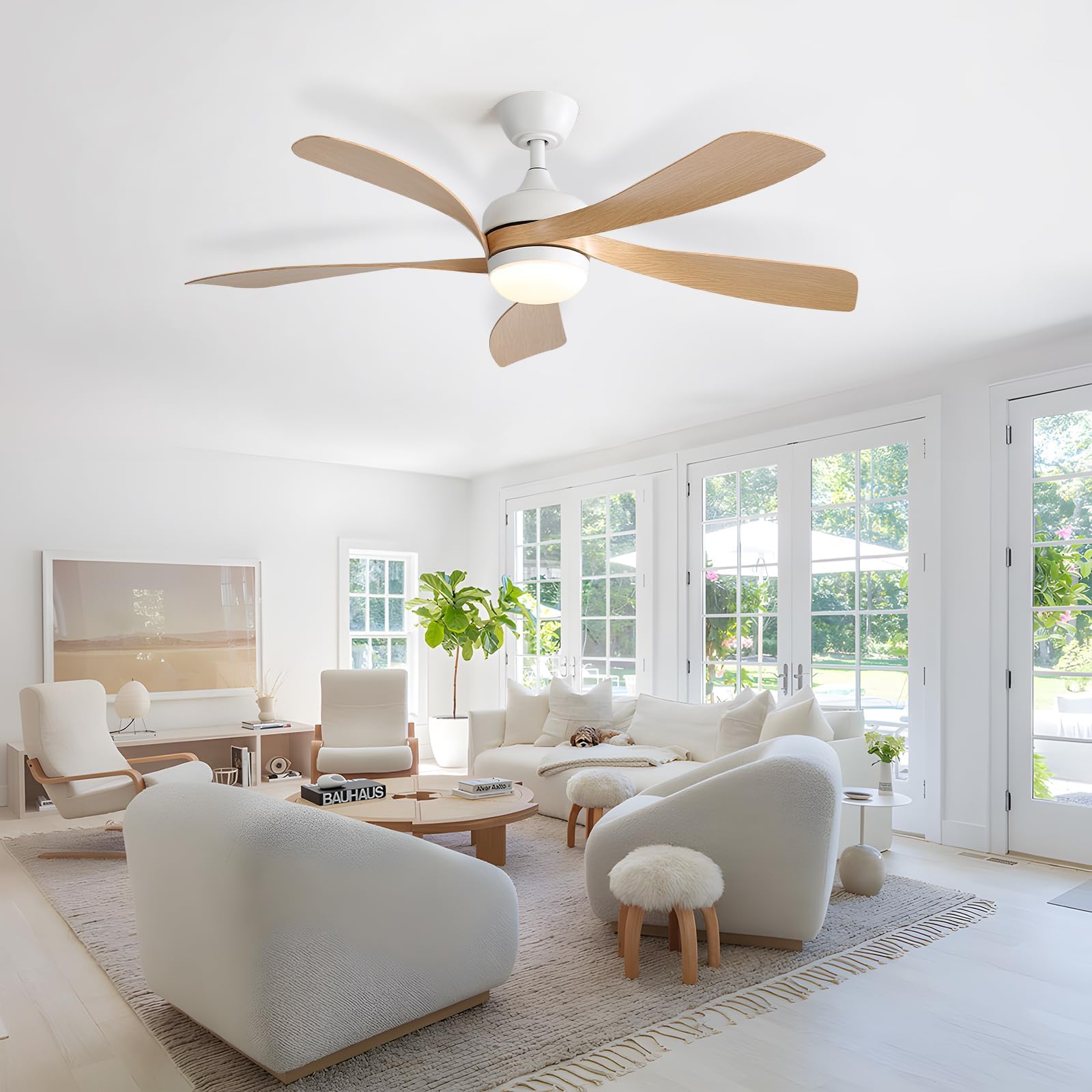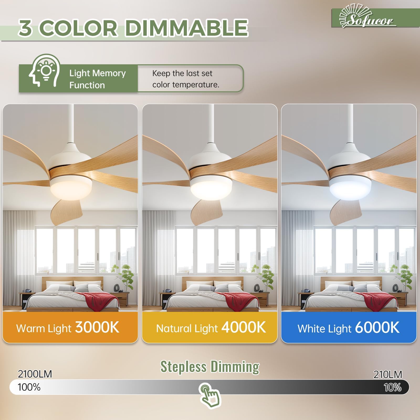 Modern Ceiling Fan with Light: Sofucor bedroom ceiling fan stylish design fits modern and farmhouse decor styles. Moisture-resistant finish, perfect for any indoor(12ftx12ft -20ftx20ft) and covered outdoor such as living room, office, bedroom, patio