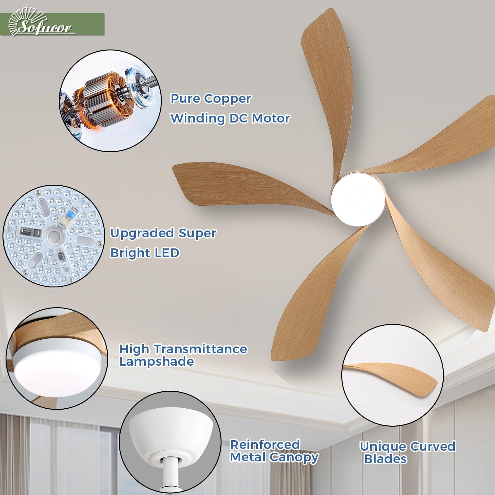 Sofucor Ceiling Fan: Sofucor 52 inch Ceiling Fan with Light has passed ETL certification. Our technical team will assist you within 24h if you have any questions. We offer a 3-year protection plan for accessories and lifetime motor maintenance