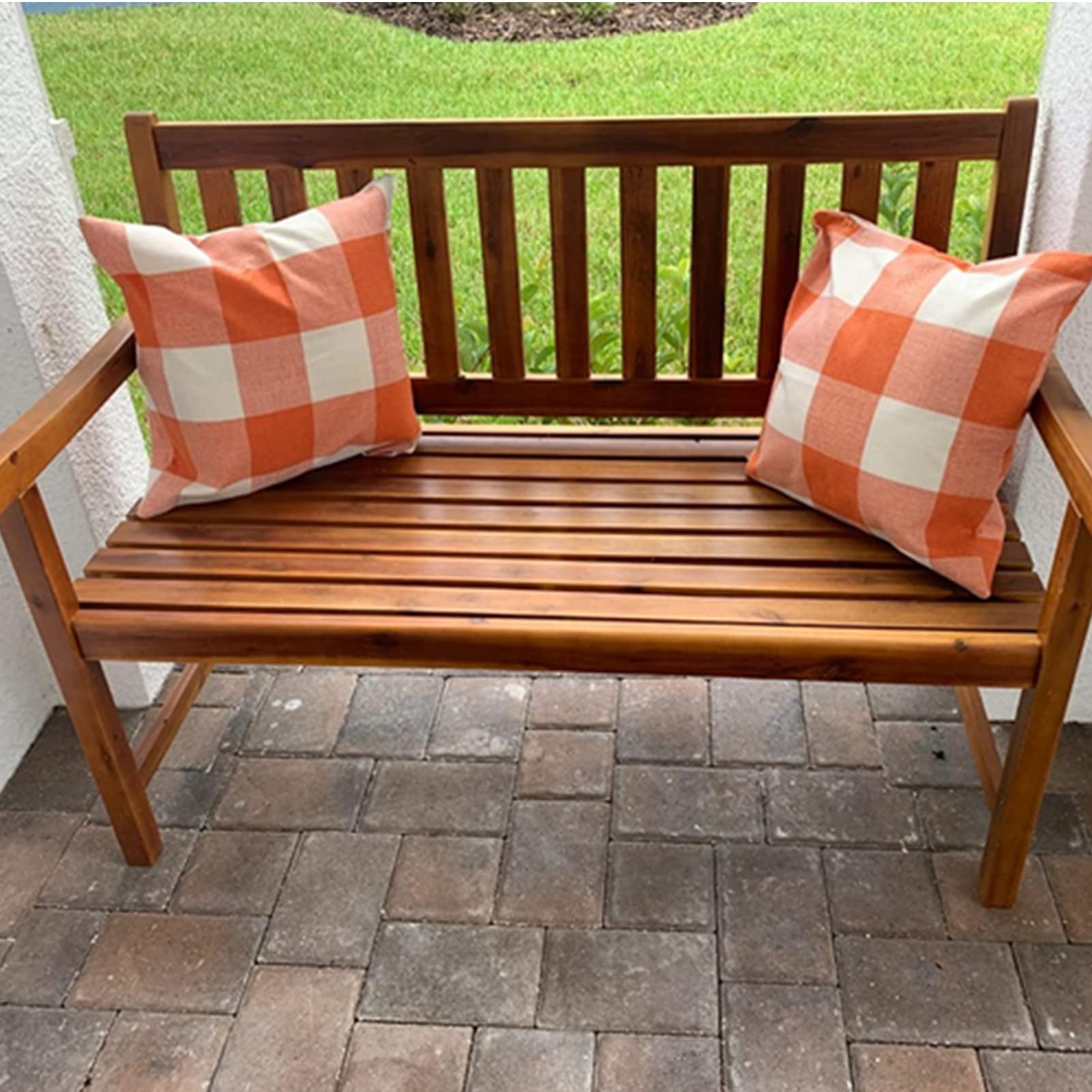 YLplaidpillow18P2-Orange and White