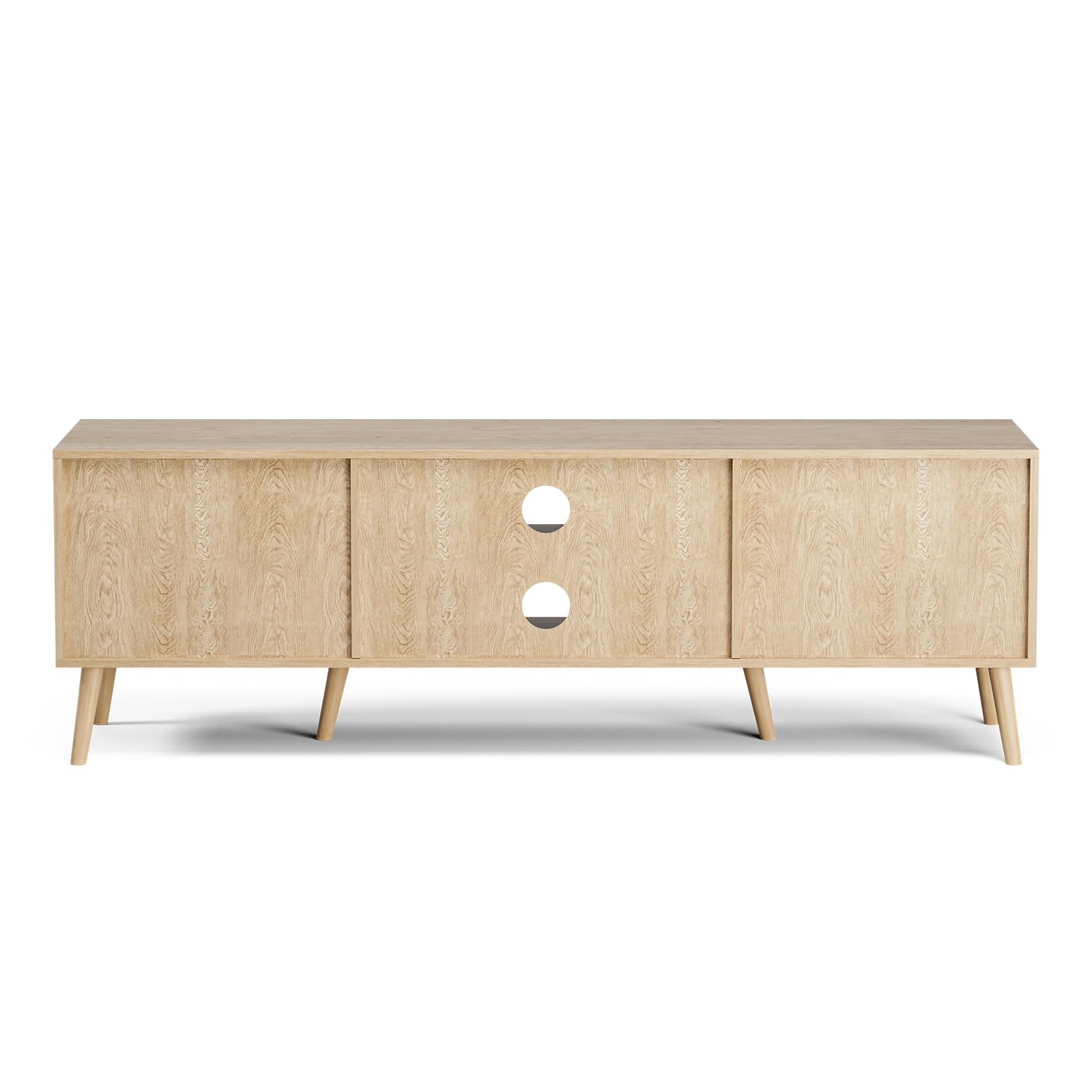 CONVENIENT STORAGE: Middle shelf and 2 large cabinets storage your favorites. And more, 2 cord holes behind arrange your wires well. Display or Hide? This mid-century tv stand is good at that
