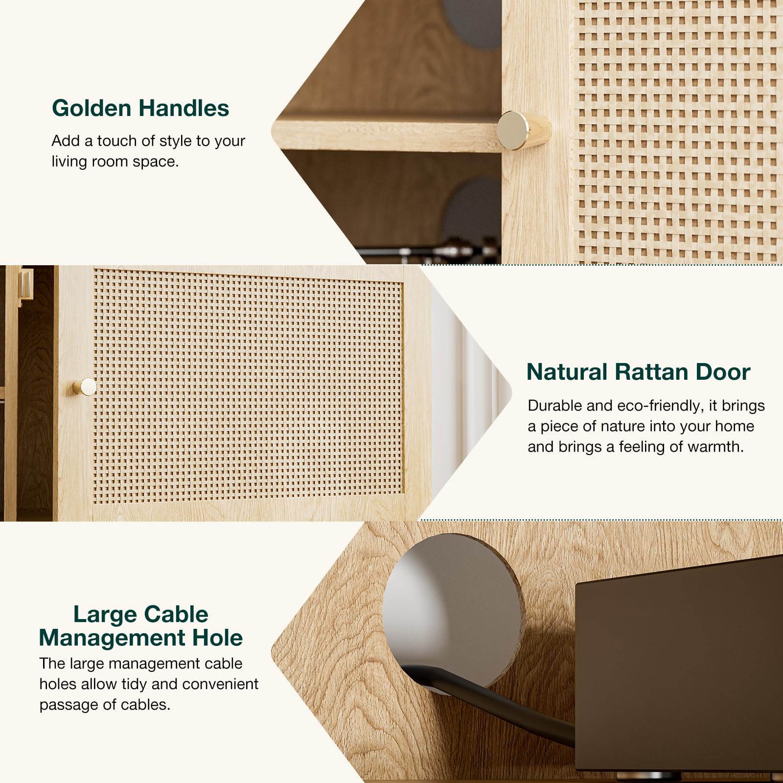 TV COMPANION: Rattan-decorated doors match the natural surface, this TV stand with storage blends modern and boho style. If your living room is calling for a new upgrade with storage, this TV stand is a great addition