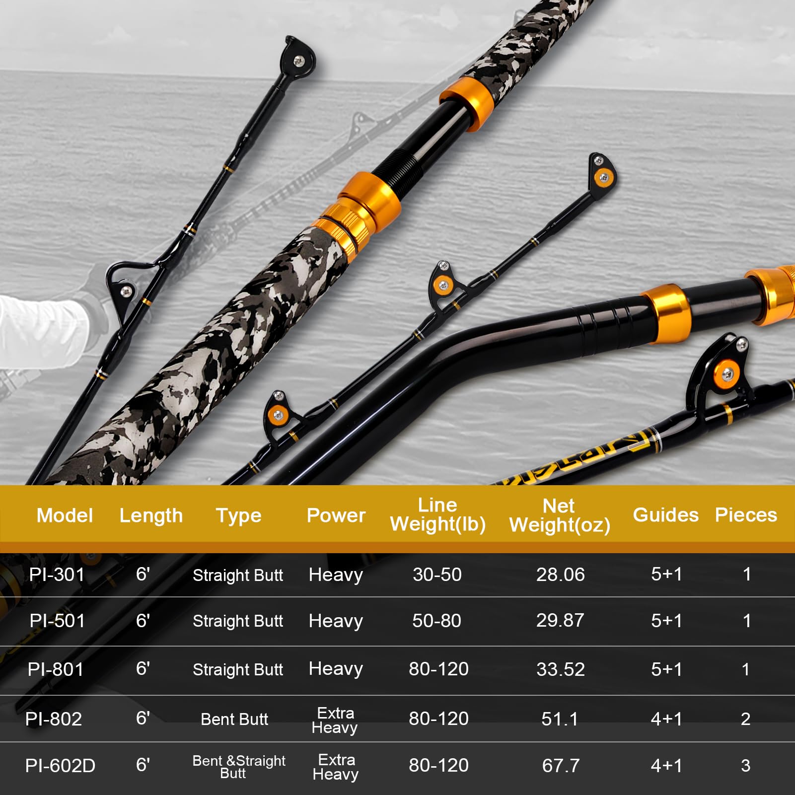Big Game Rod: IGFA tournament trolling rods; the practical and fashionable rod allows you to travel to your favorite fishing spot and enjoy fishing whenever and wherever you want