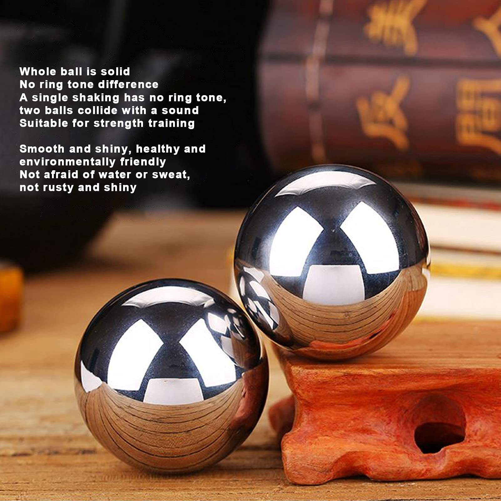 Stainless Steel Material: Solid Steel Baoding Balls made of quality stainless steel which is hardened for extreme durability, dont worry about balls chipping or getting damaged, not afraid of water or sweat, not rusty and shiny