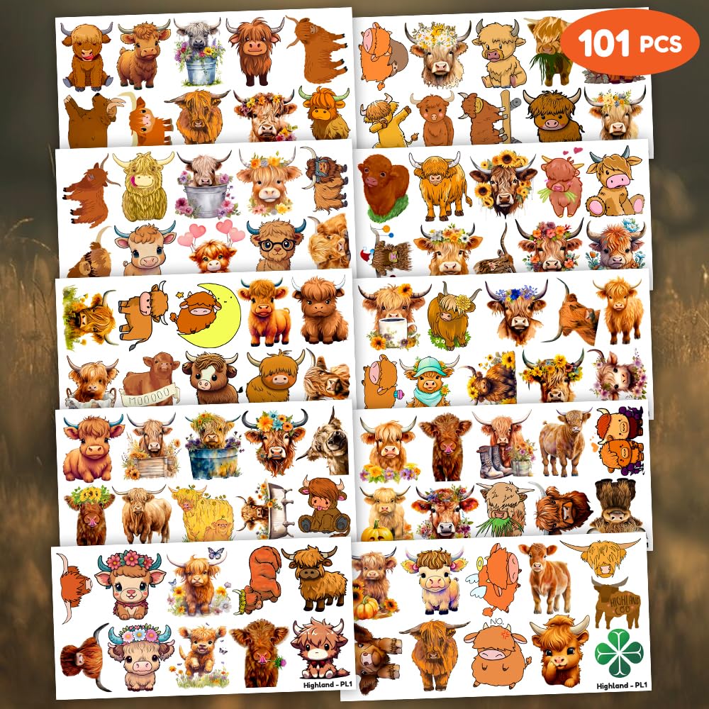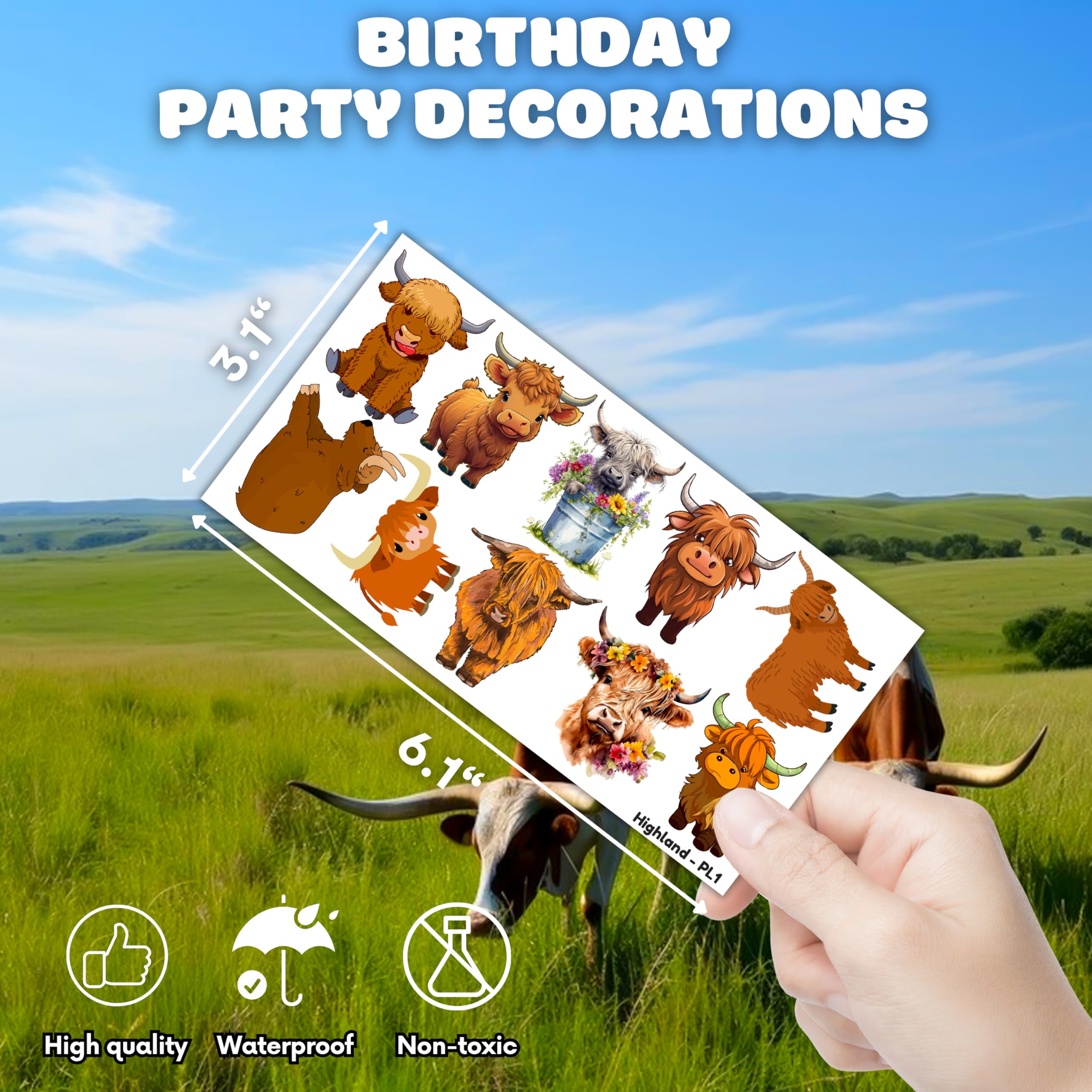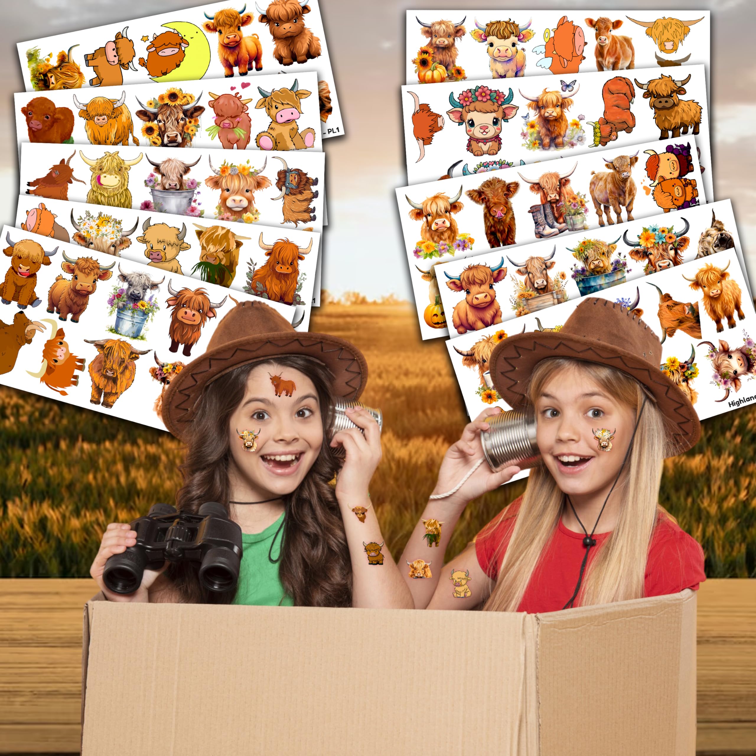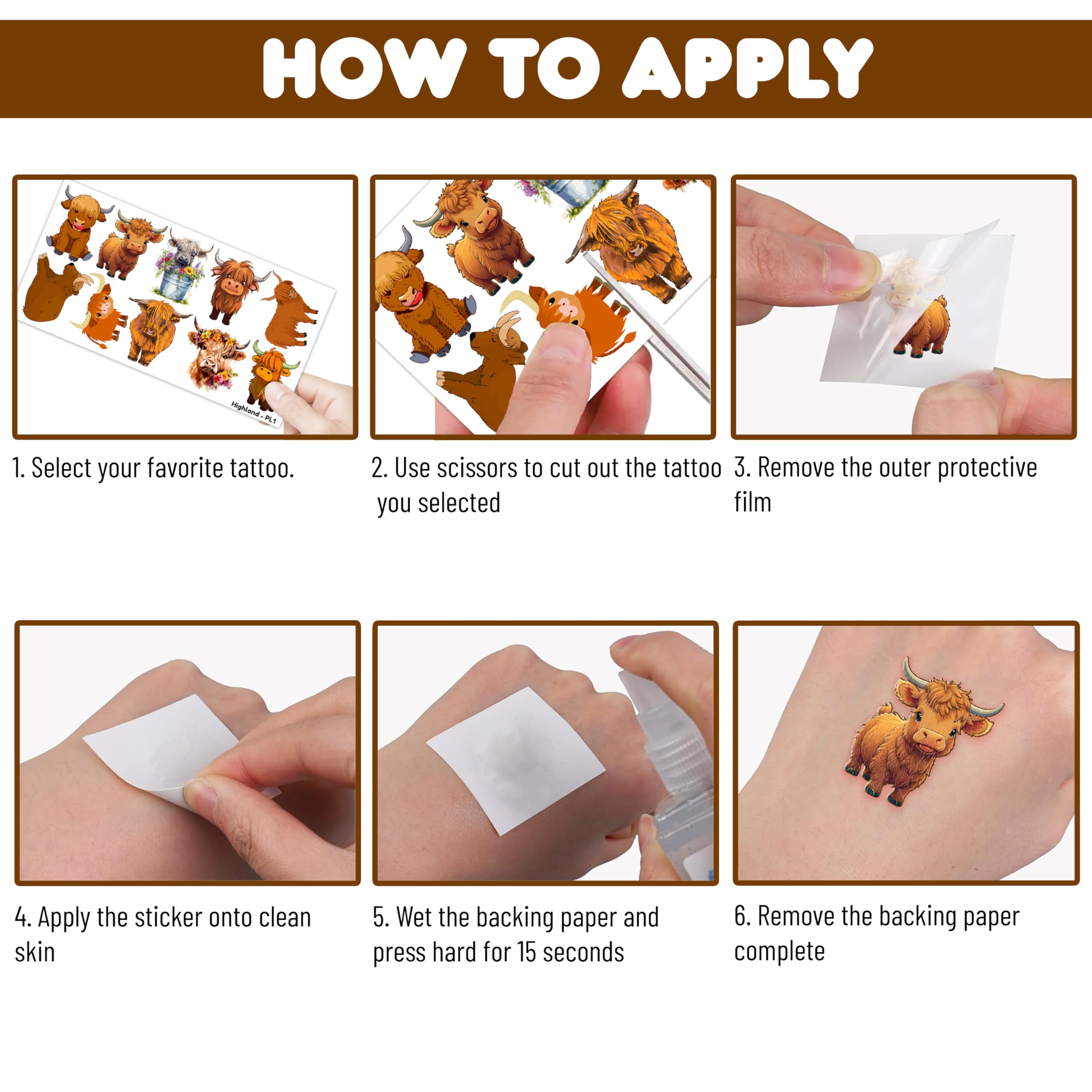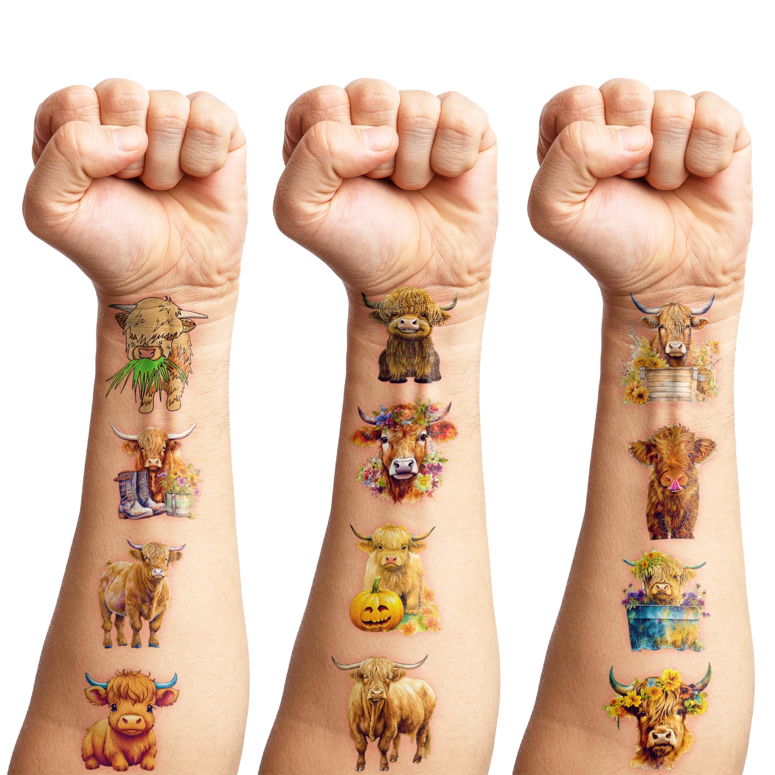 Pattern rich: Highland Cow Print Funny Animal Brown Cattle Temporary Tattoos include 10 Sheets 101 PCS, the size of each sheet is 6.1 * 3.1 inches. Easy to share,even if a lot of people's parties, you can have a different tattoo with others.These adorable tattoos will keep you and your little ones – and their friends – occupied for a while.