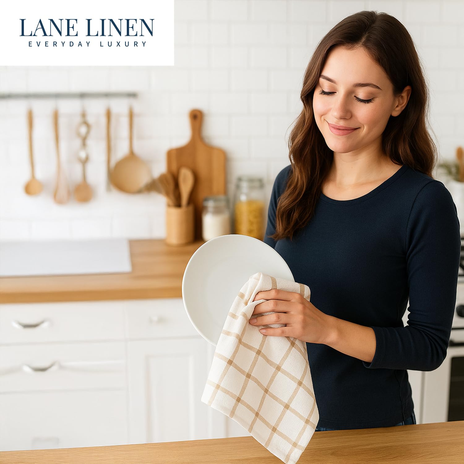 Value Pack : Lane Linen dish towels and dishcloths sets includes 6 Pack Beige Dish cloths for washing dishes. Great alternative to paper towels. With a convenient size of 18 x 28" anyone can handle these kitchen linen sets and you will never run out of dish towels again!