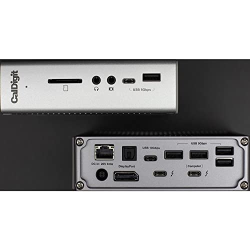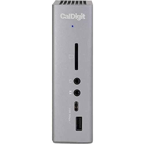 The TS3 Plus is the ideal solution for Thunderbolt 3 Mac and PC users who need to connect multiple devices to their laptops such as SD card readers, USB hard drives, dual monitors, digital audio devices, Thunderbolt 3 components and much more. Manufacturer: CalDigit, Inc. Manufacturer Part Number: TS3PLUS-US07-SG. Brand Name: CalDigit. Product line: TS3 Plus. Product Name: TS3 Plus Docking Station Package Quantity: 1. Product Type: Docking Station. Technical information: Connectivity technology: wiring. Compatible devices: memory card reader. Memory card reader: yes. Compatible memory card: SD. Number of supported screens: 2. Supported screen mode: 4K. 5K. Supported resolutions: 3840 x 2160. 7680 x 4320. [Network and communication] Ethernet technology: Gigabit Ethernet. [Interfaces/Ports] Host Interface: Thunderbolt 3. Audio Line In: Yes. Audio line out: yes. Number of USB 3.1 Type C ports: 2. Number of USB 3.1 Gen 1 Type A ports: 5. Number of USB 3.1 Gen 1 Type C ports: 1. Number of USB 3.1 Gen 2 Type C ports: 1. Number of USB ports Type A: 5. Number of USB Type C ports: 2. USB Type A: Yes. USB Type C: Yes USB type C detail: 2 USB 3.1 type C (5 V 1.5 A). Network (RJ-45): yes. Number of RJ-45 ports: 1. S/PDIF Out: yes. Number of DisplayPorts: 1. DisplayPort: yes. DisplayPort version: 1.2. Ray: Yes. Number of Thunderbolt 3 ports: 2. [Software] Compatible operating system: macOS. Windows. [Power Description] Maximum power supply power: 87W. [Physical characteristics] Height: 5.15 inches. Width: 1.57 inches. Depth: 3.87 inches. Approximate weight: 1.04 pounds. [Miscellaneous] Package Contents: TS3 Plus Docking Station, 1 Power Adapter, 1 Power Cable, 1 Thunderbolt 3 Cable. [Warranty] Limited Warranty: 2 years.