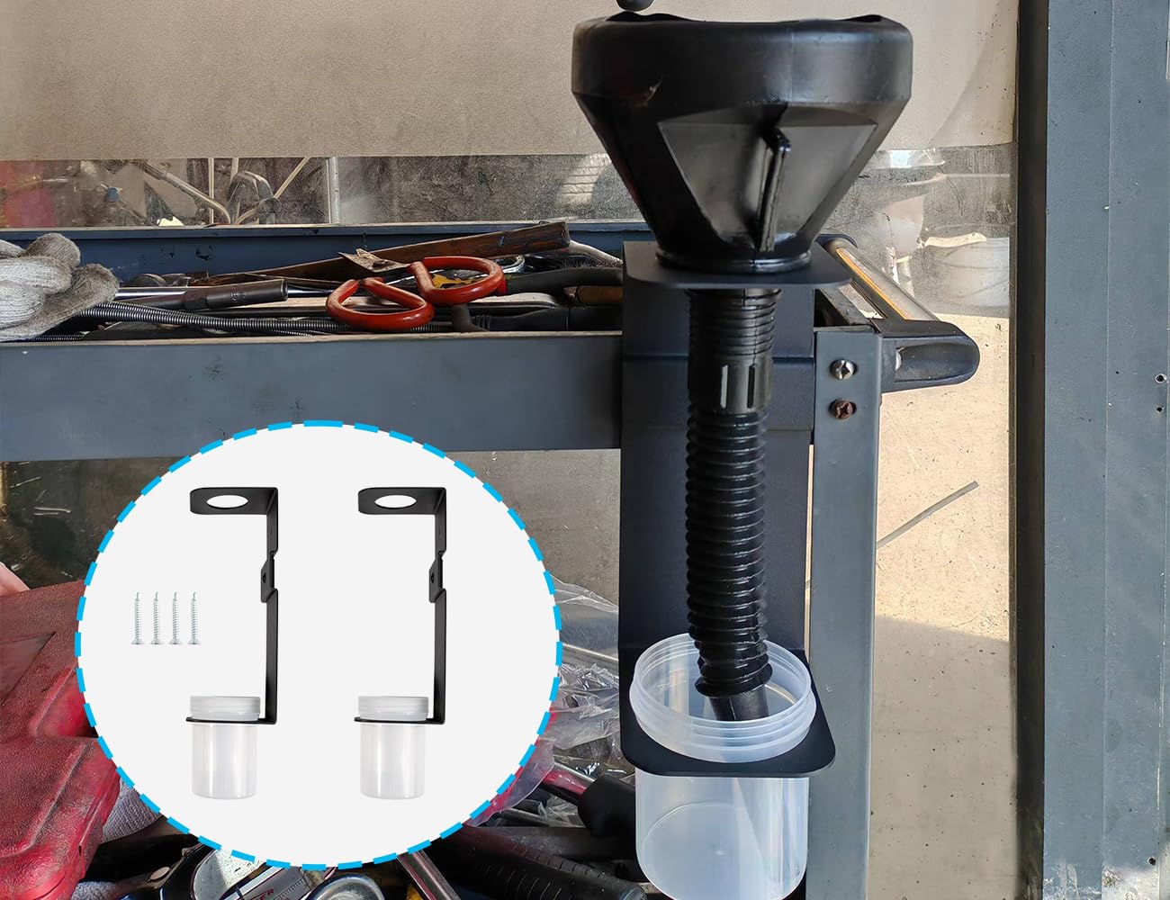 【Quality Material for Durability】 Unlike other holders, our funnel is constructed from Carbon Steel Material ,design with a magnet, Neodymium iron boron magnets are suitable for adsorbing iron items, hold the funnel on ferrous metal surfaces without slipping,but not for (aluminum alloy, stainless steel, copper),Of course you can also pin it to the wall to use.The removable cups are made of plastic, offering a sturdy and easy to clean solution for containing oil spills.