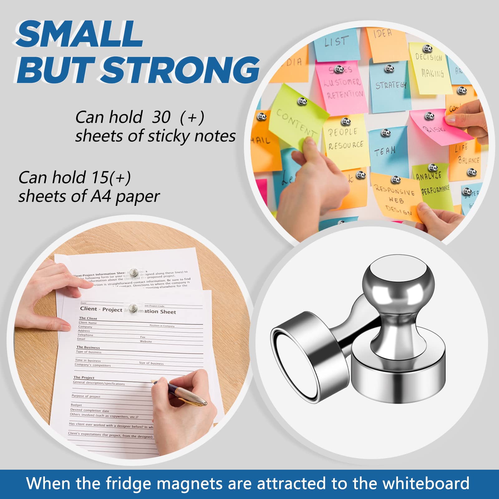 【WIDE APPLICATION】Heavy duty strong magnets for whiteboard can play a great role in many life scenes. Magnetic push pin magnets are suitable for whiteboard, refrigerator magnets, office magnets, classroom magnets and map magnets.When your sticky notes, recipes, and work schedules are nowhere to be found, our strong magnets for whiteboard may be just what you need!