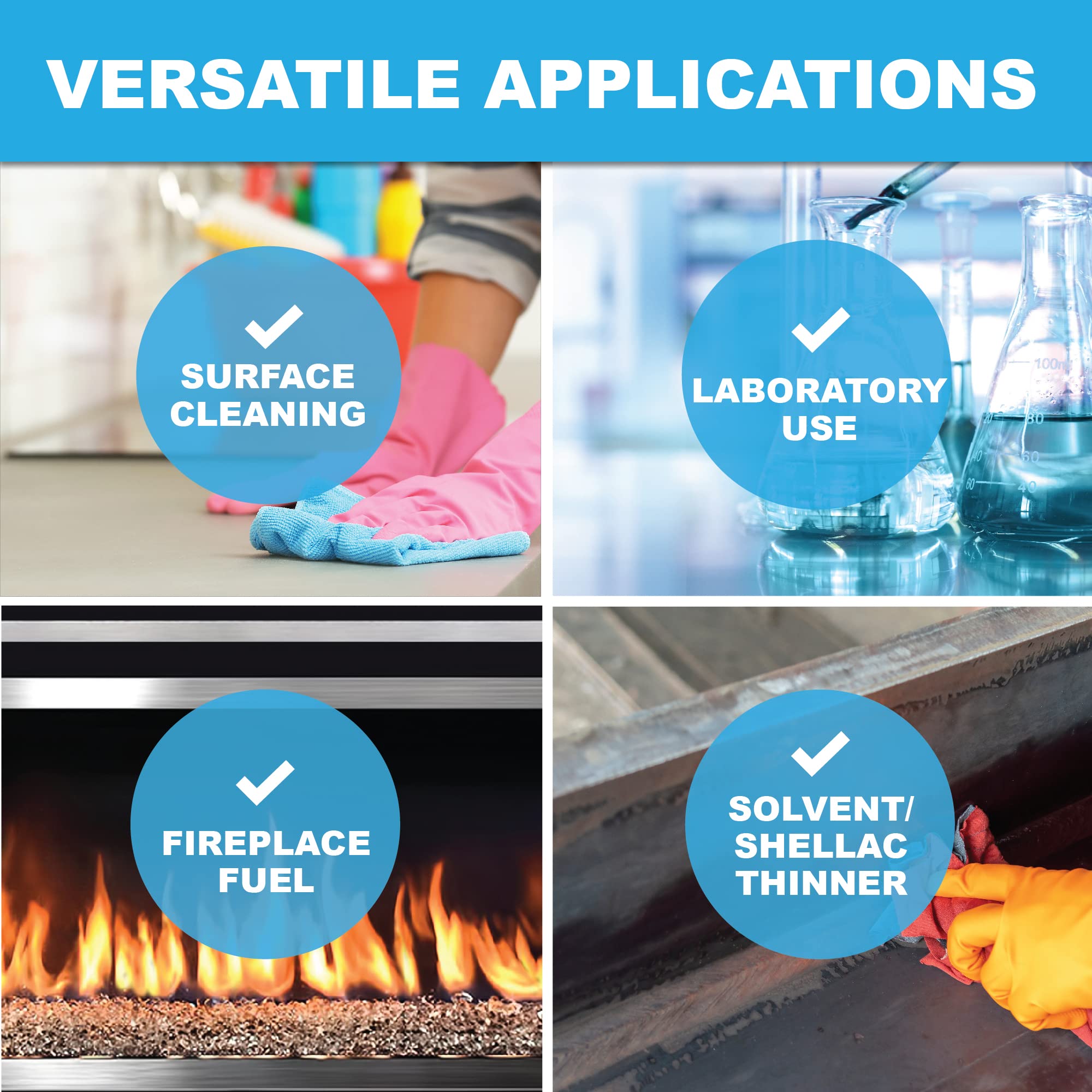 Multi-Use denatured alcohol including bio ethanol fuel, denature alcohol solvent, shellac thinner, laboratory use, ethanol fuel treatment and ethanol for cleaning surfaces.