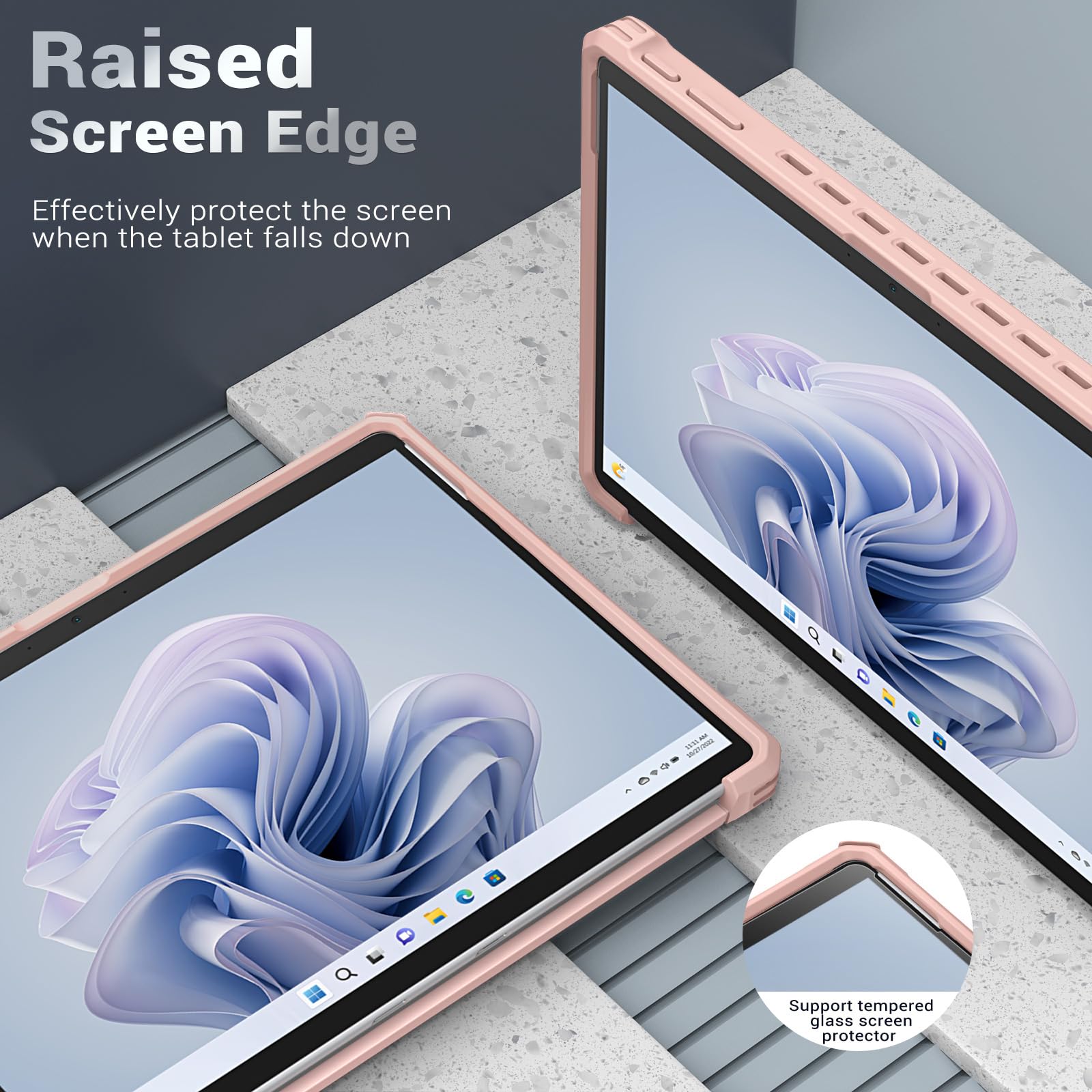 FRIENDLY TO USE WITH SCREEN PROTECTOR: The raised design around the tablet screen protects it efficiently from accidental dropping and breaking. It's also convenient for applying different kinds of screen protector on Surface Pro 10 and Pro 9 screen.