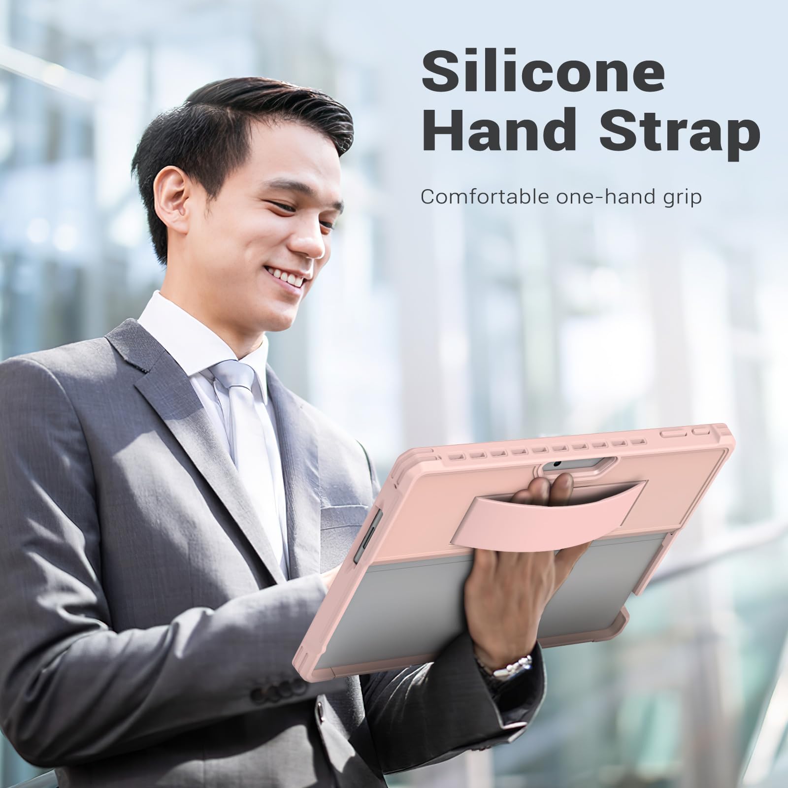 FUNCTIONAL HANDSTRAP: This Microsoft Surface Pro 11, Pro10, Pro 9 cover and Surface Pro 10 cover has a durable and snug elastic hand strap for ensuring a safe and comfortable hand use experience. With the elastic hand strap for one-hand use, you can grip your tablet more firmly and conveniently in different situations, such as on the bus or subway or in the library or coffee shop, without worries about accidental falling.