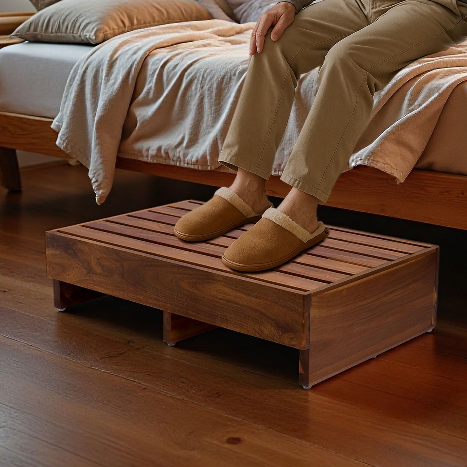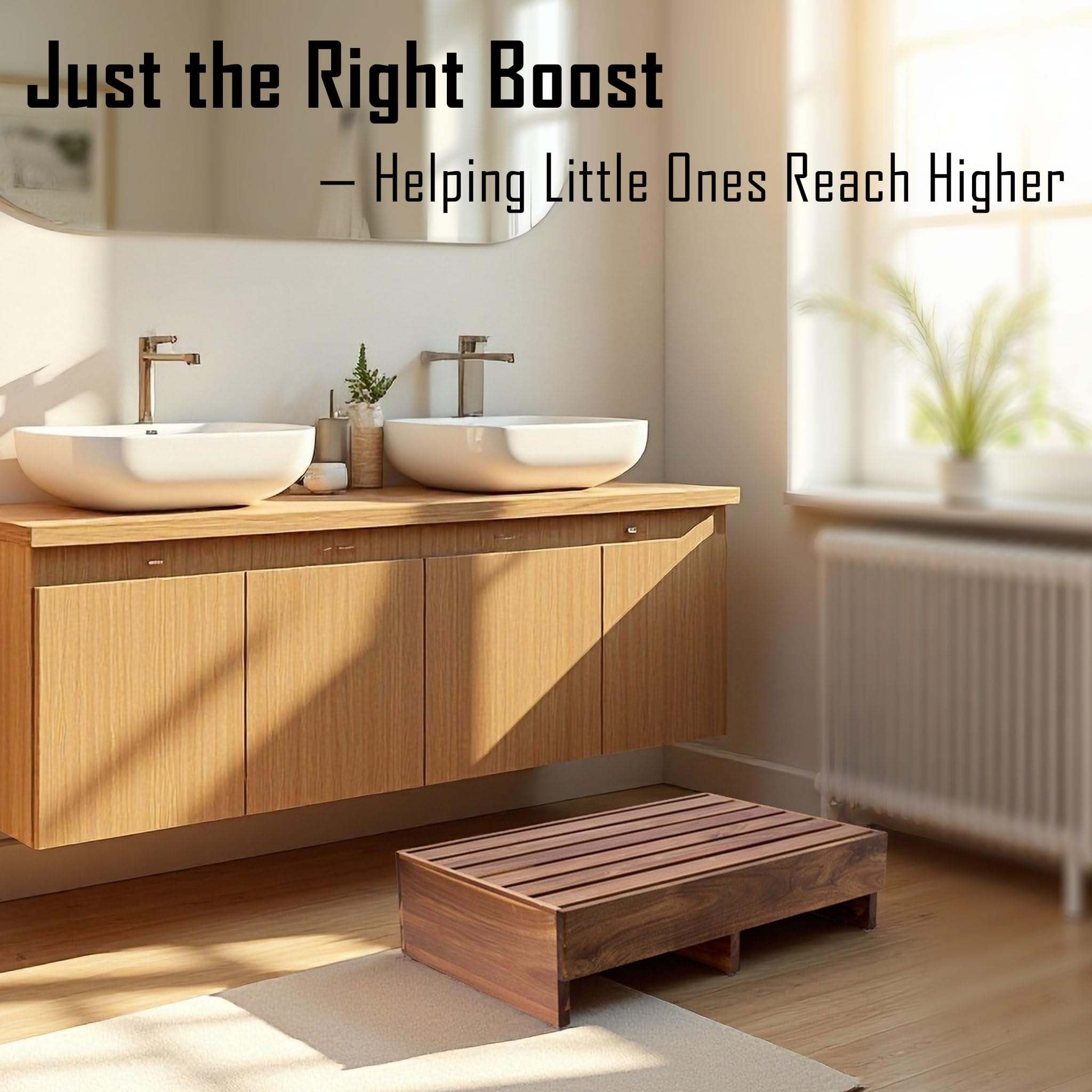 Versatile Use: The wood platform serves as a practical step stool, assisting elders in accessing beds, tubs, or helping kids reach high countertops. Additionally, it makes a great stand for plants or other items