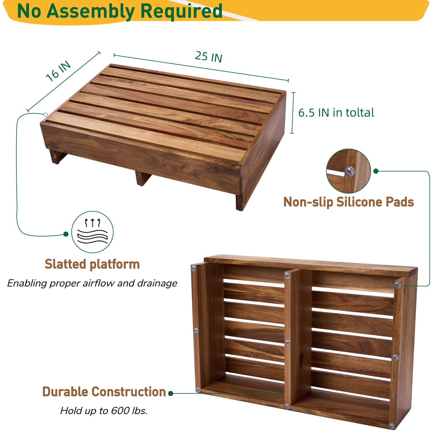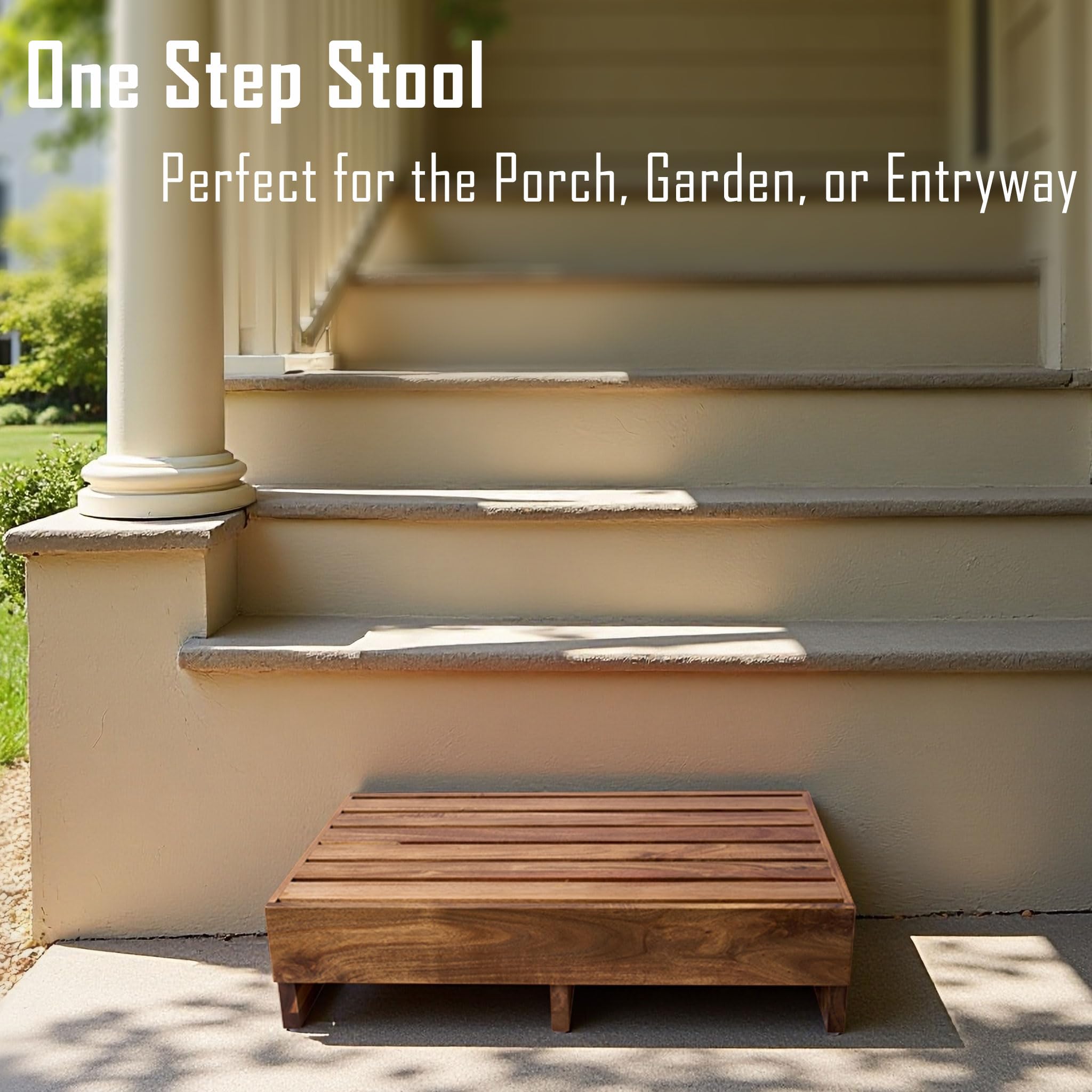 3.8'' and 6.5'' Height Available: The 3.8'' height step platform (25''L x16''W) is suitable for porch steps, stairs, toilets, etc. The 6.5'' height step stool (25''L x16''W) is good for all ages for a high bed, tub, and kitchen countertop. Buruis wooden platform features outdoor steps and indoor steps for seniors, adults, and little ones.