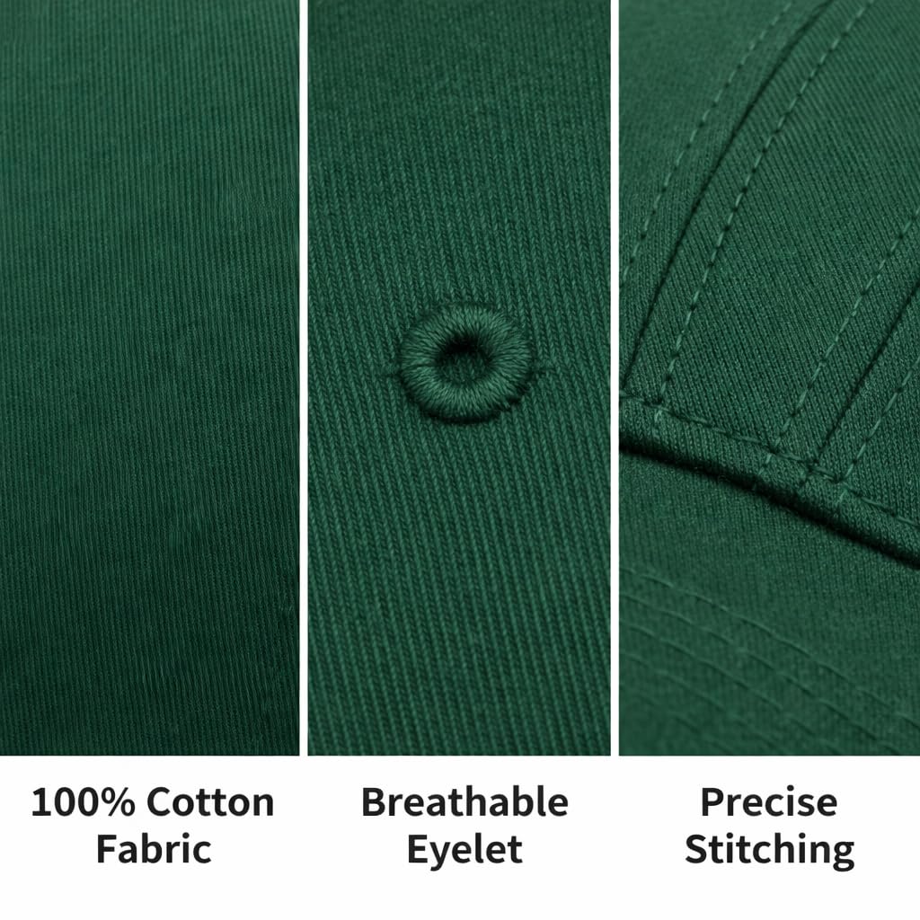 Breathable 100% Cotton Fabric. Made from premium 100% cotton, this baseball cap provides excellent breathability and softness. Ideal for hot summer days or sports activities, it keeps your head cool and sweat-free while looking effortlessly casual.