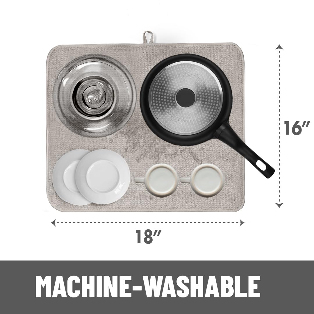 KEEP YOUR ANTIQUE GLASSWARE SAFE: Our stylish kitchen drying mat protects your counter from scuffs and scratches while also keeping your most prized kitchen essentials and glassware safe and sound . And If you ever feel like washing your dish drying mat , simply toss it in the wash with the rest of your laundry-this absorbent microfiber construction has a flexible core that does not weaken in the wash