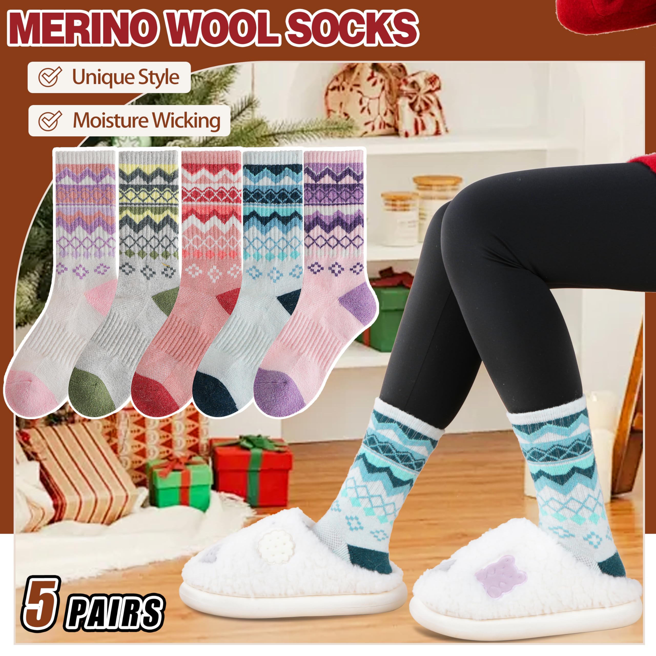 TWO SIZE OPTIONS - EBMORE merino wool hiking socks have 2 sizes as options, Medium & Large .Medium Size fits for US women’s shoe size 5.5-10.Large Size fits for US women’s shoe size 10-13. A package includes 5 pairs womens warm socks at a value price.