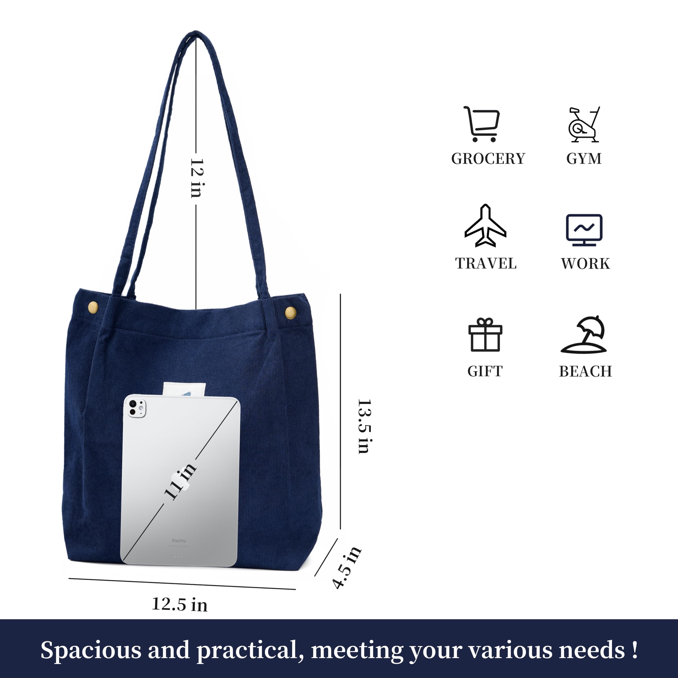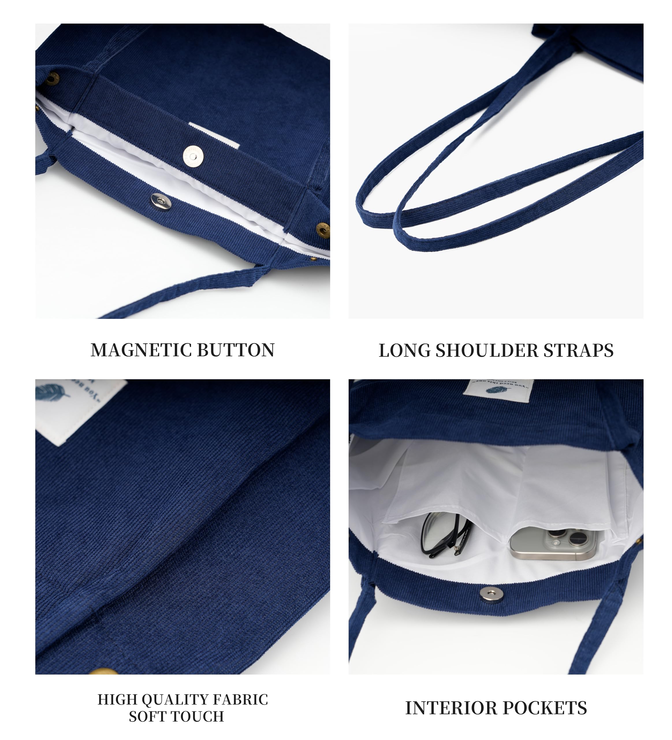 HIGH QUALITY: The tote bag is made of sturdy corduroy fabric, soft and warm to the touch, with reinforced shoulder straps, very strong and durable, smooth lining, very easy to clean and can be used repeatedly for a long time.