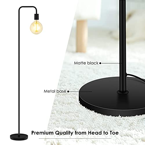 Design, Less is More; BoostArea industrial floor lamp made with matte black metal, without complex adds, this cool minimalist floor lamp offers a comfortable and delightful ambiance to your home with the modern pole and exposed bulb (Bulb Not Included); Less is more, thanks for the simple design, this standing lamp leaves space for you to DIY, you are the designer for your unique room; Pick it as the floor lamps for bedroom or living room, enjoy with vintage, mid-century or contemporary styles