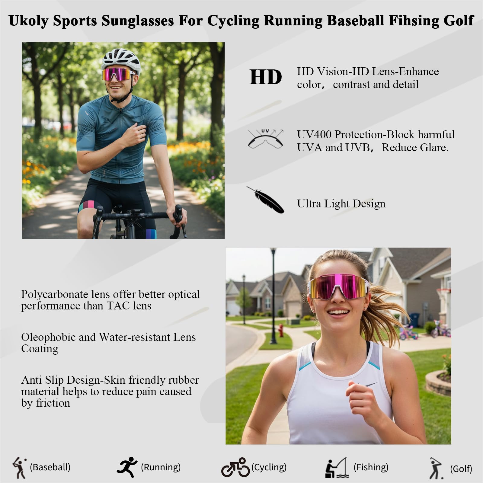 Anti Slip Design : The legs of the Ukoly Sports sunglasses are made of non-slip rubber, which makes it harder to fall off during exercise. However, during strenuous exercise, we recommend that you wear the anti-slip cord that comes with your sunglasses.