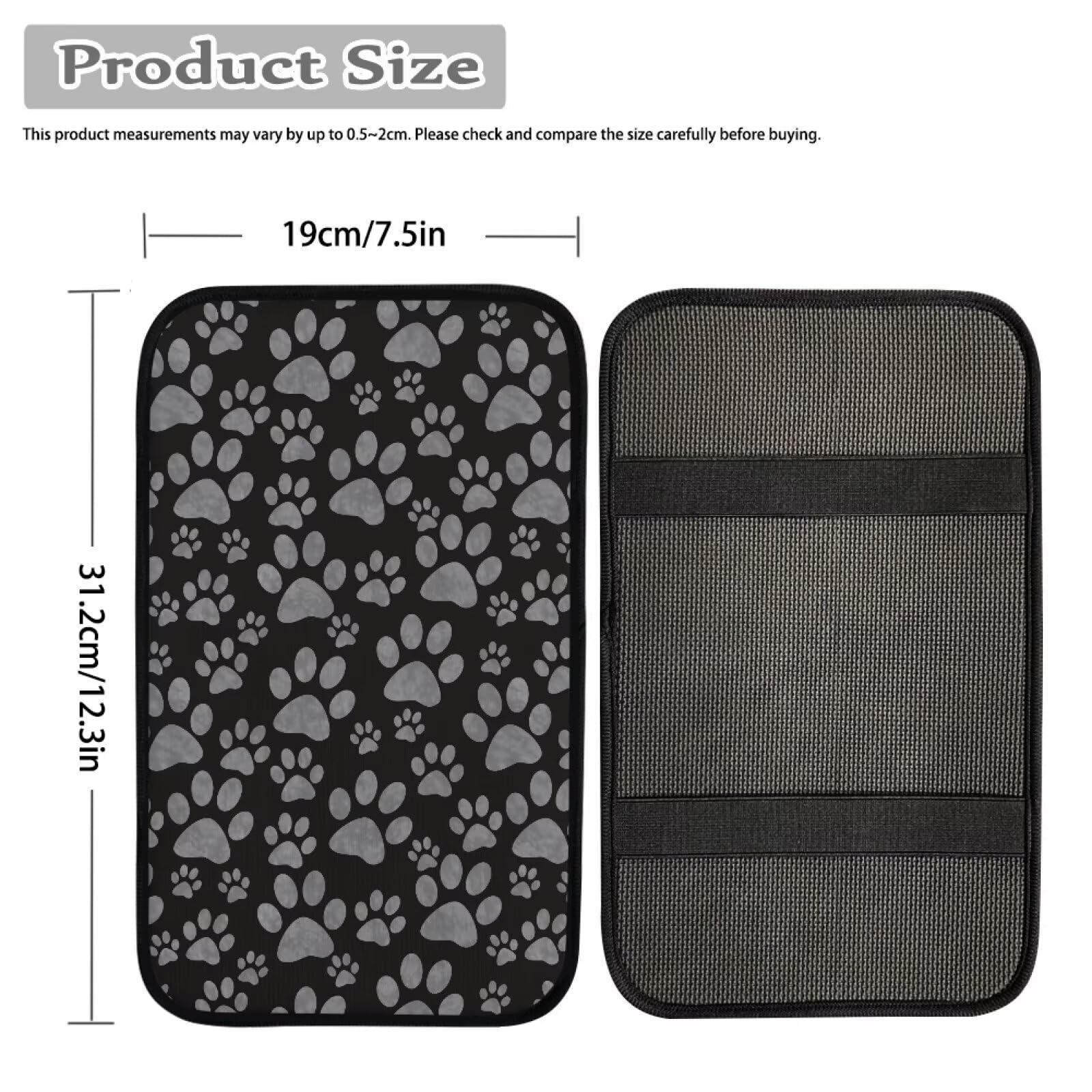 Our armrest pad is 12.6 inch long, 7.5 inch wide that matches most of the auto car center console armrest box, it covers whole top and make it looks different by stylish patterns