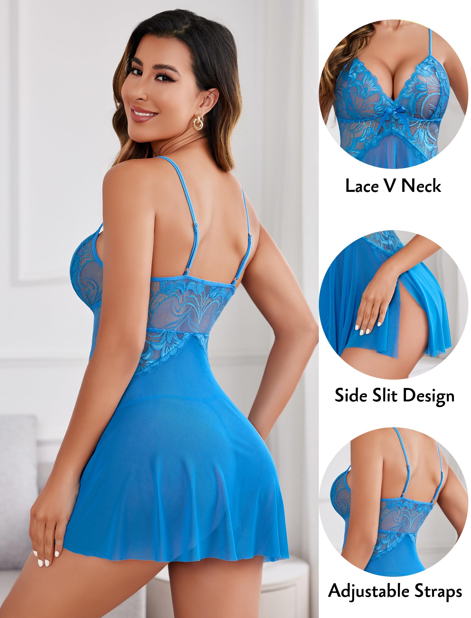 Avidlove lingerie babydoll is made of lace and mesh. Flattering floral lace and high quality mesh material, breathable and comfortable to wear