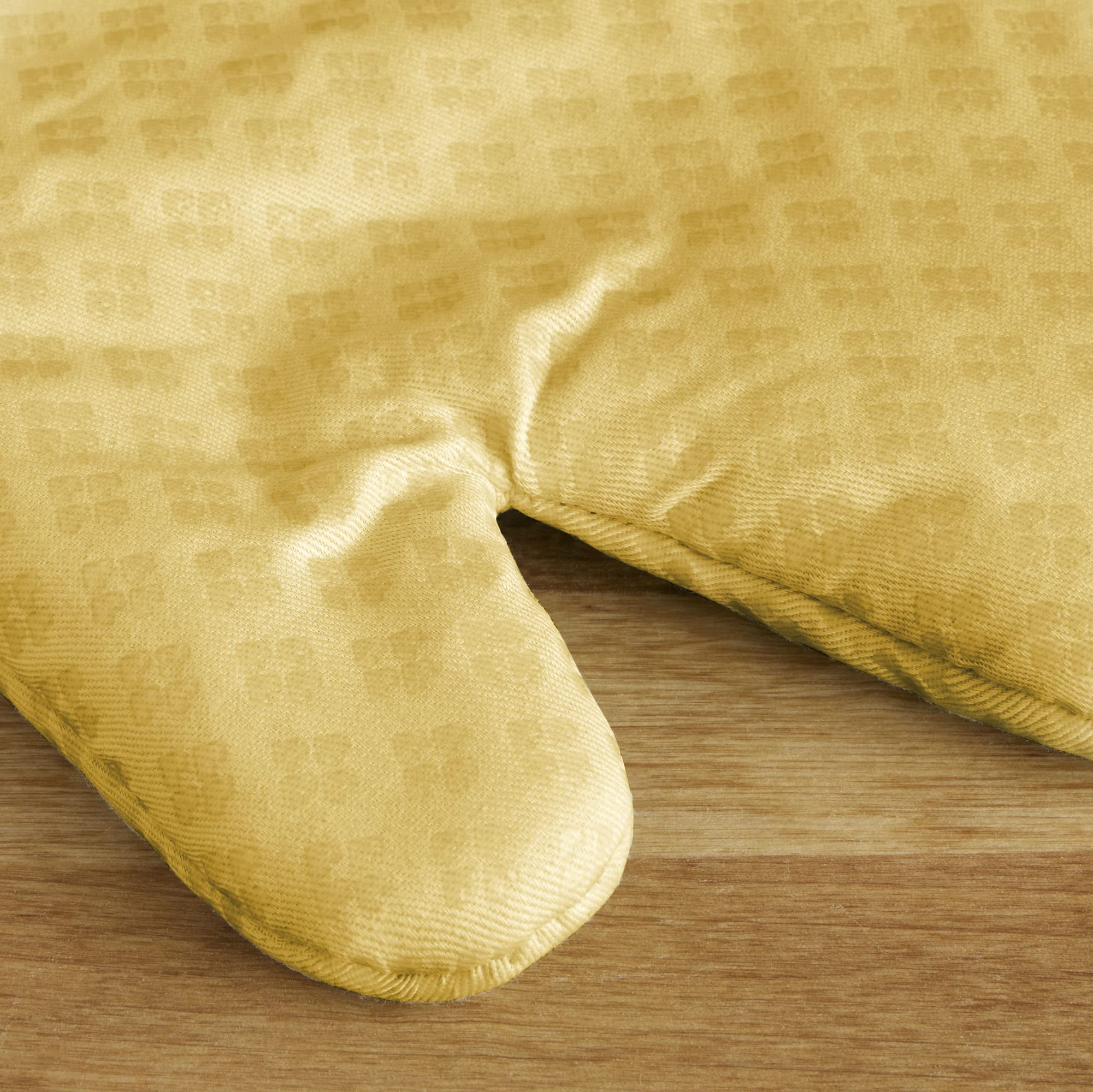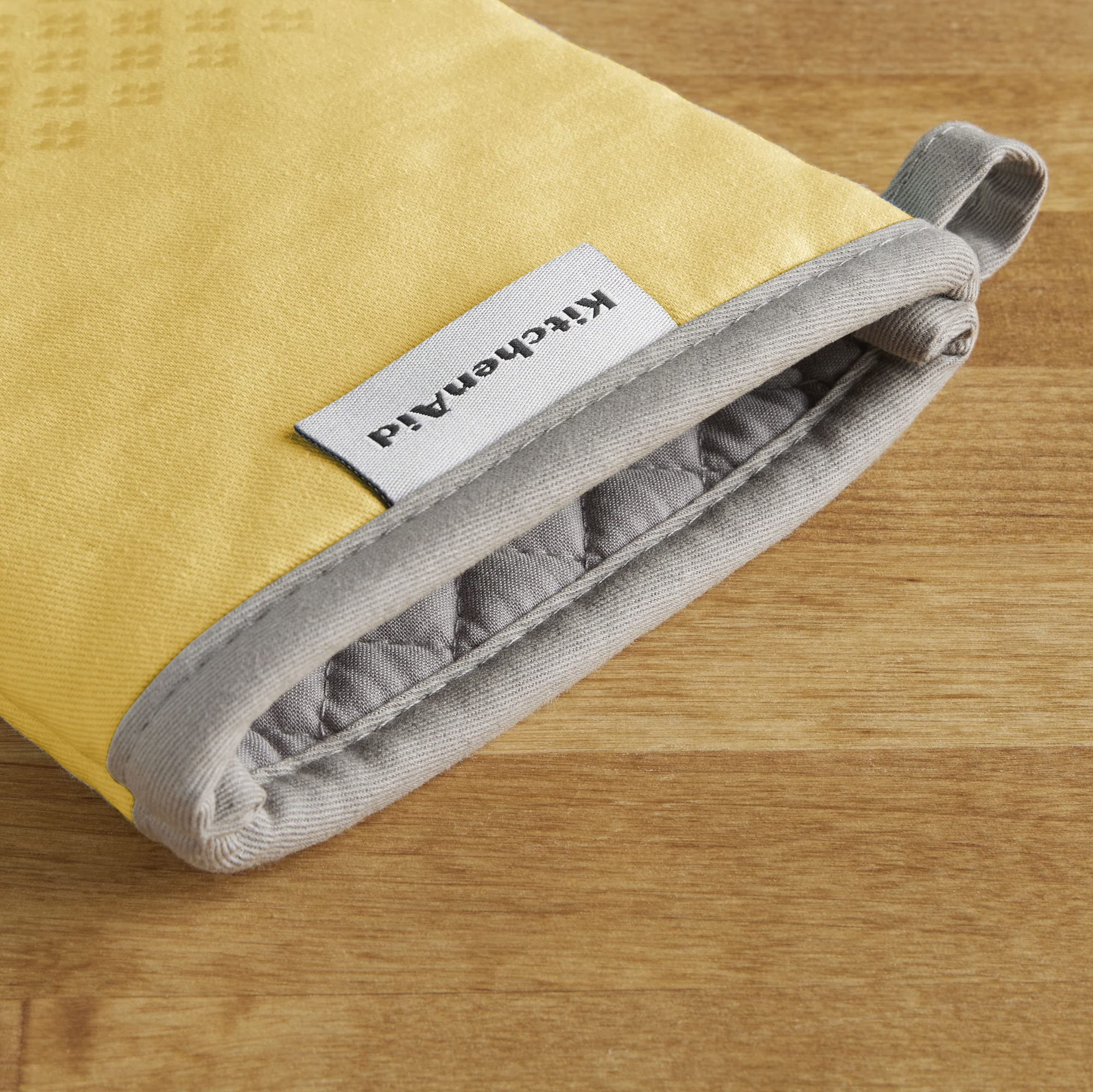 Shield your hands from the heat with the Kitchen Aid Asteroid Oven Mitt 2 Pack. These oven mitts each measure 7 inches wide by 12. 5 inches long for a spacious fit, and they are heat resistant to protect your hands while handling hot pots, pans, and dishes. The heavy-duty, 100 percent cotton fabric on the outside as well as the cotton lining offers comfort, flexibility, and insulation. Textured, silicone print grips on the mitts are heat resistant and also ensure a more firm and secure grip when handling dishes and cookware. The matching oven mitts feature a convenient hanging loop to easily display or store them when not in use. They are easy to clean and machine washable for easy care. Use your Kitchen Aid Asteroid Oven Mitt 2 Pack along with coordinating kitchen accessories from Kitchen Aid including potholders and kitchen towels for a complete set of Kitchen Aid kitchen essentials! Each item is sold separately. Perfect for cooking and baking. Give the Kitchen Aid Asteroid Oven Mitts as a gift to a friend or family housewarming, on holidays or any special occasion. Made in China.