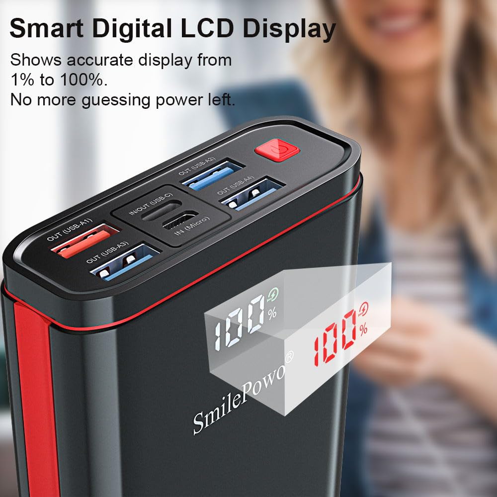 【Portable Charger Power Bank with LCD Screen & Amazing Look】: The high capacity battery charger with smart digital LCD display tells you how much percent of the power. You needn't guess how much battery it left. Can be easily put inside backpacks, purses, or computer bags. Where you go, where to charge the power for outgoing, business or travel.
