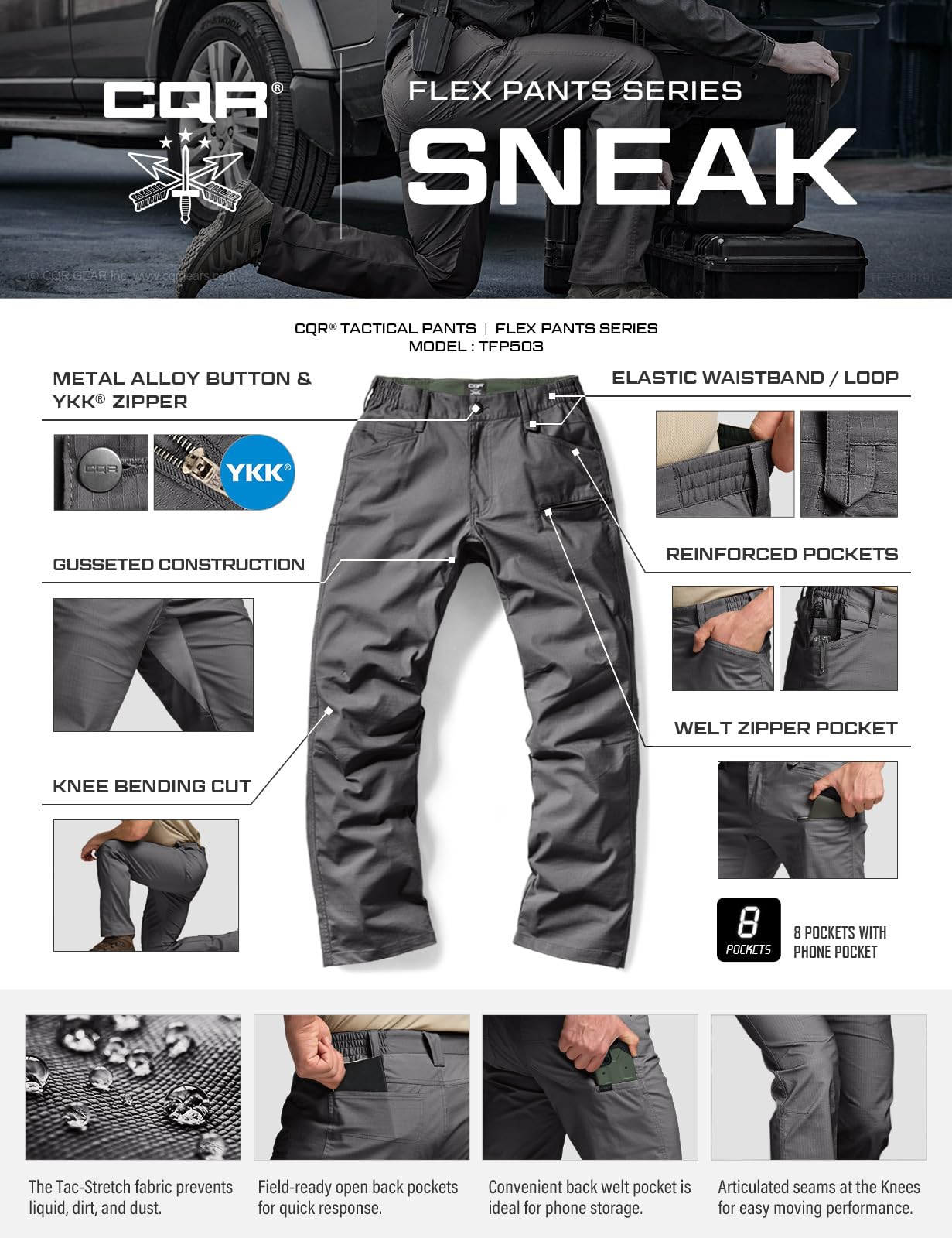 [Tac-Stretch Fabric] Improved range of movement and apt for tough conditions.
