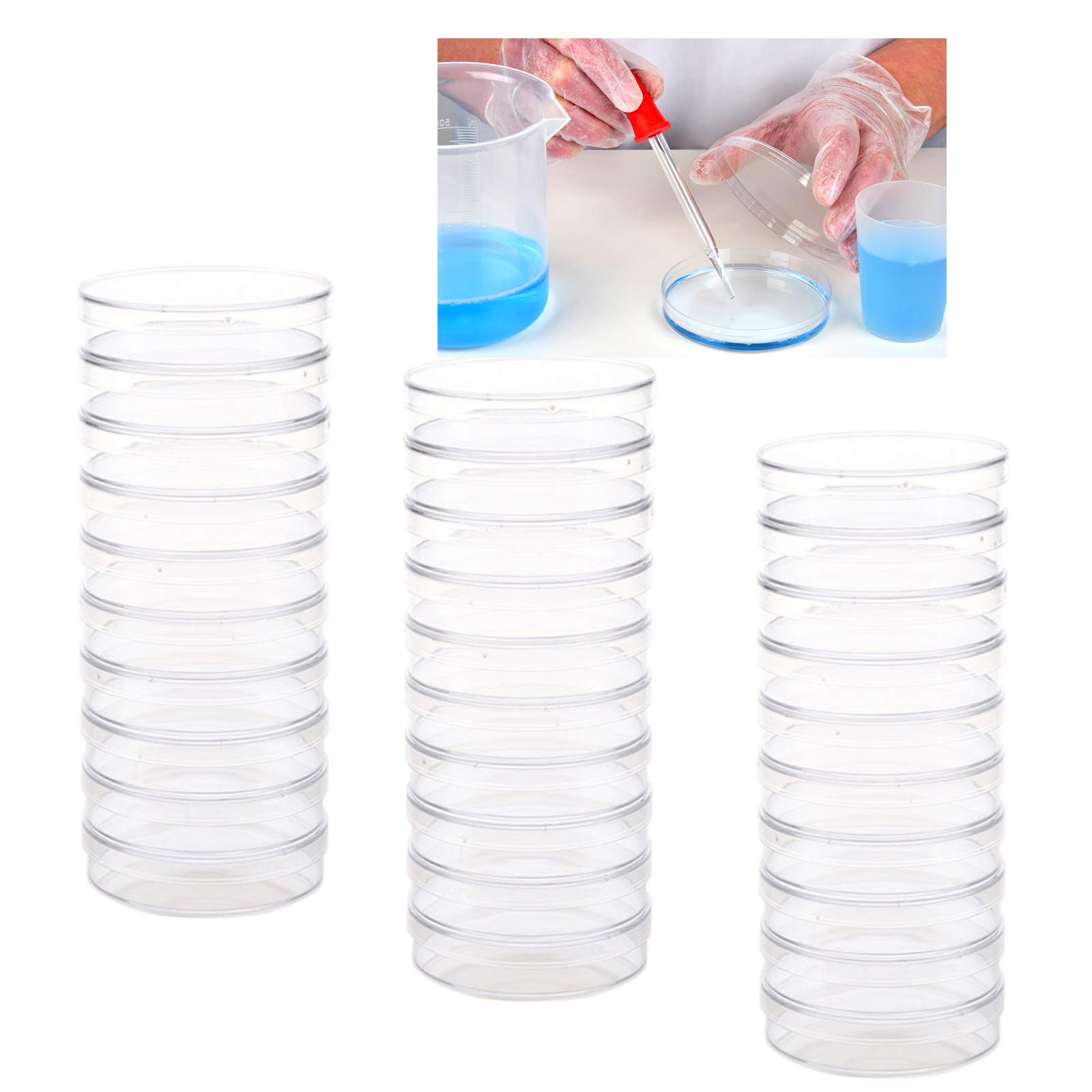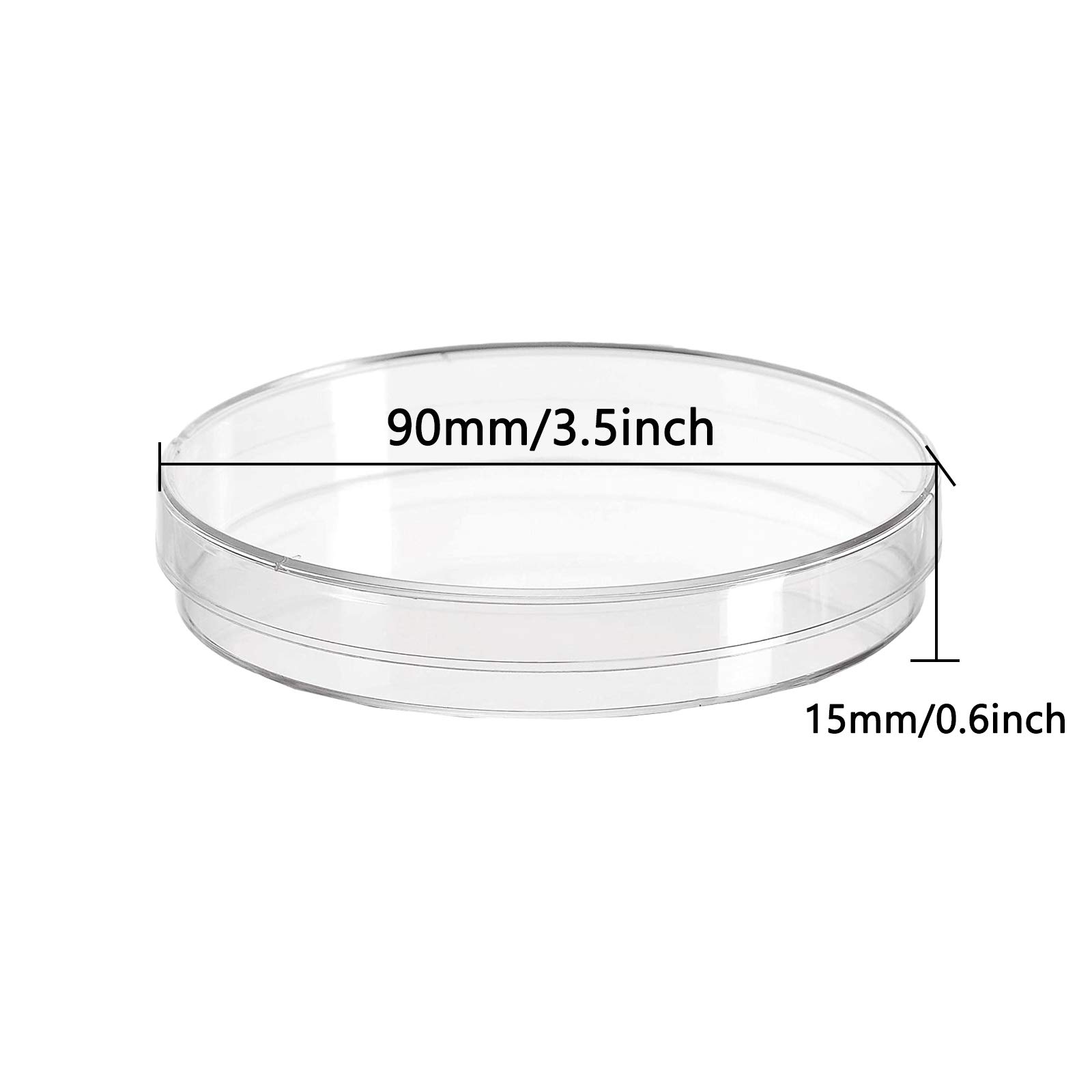 Size:The petri dish is 90 mm/3.5 inch in diameter,15mm /0.6 inch in depth,perfect size for science projects and laboratory analysis