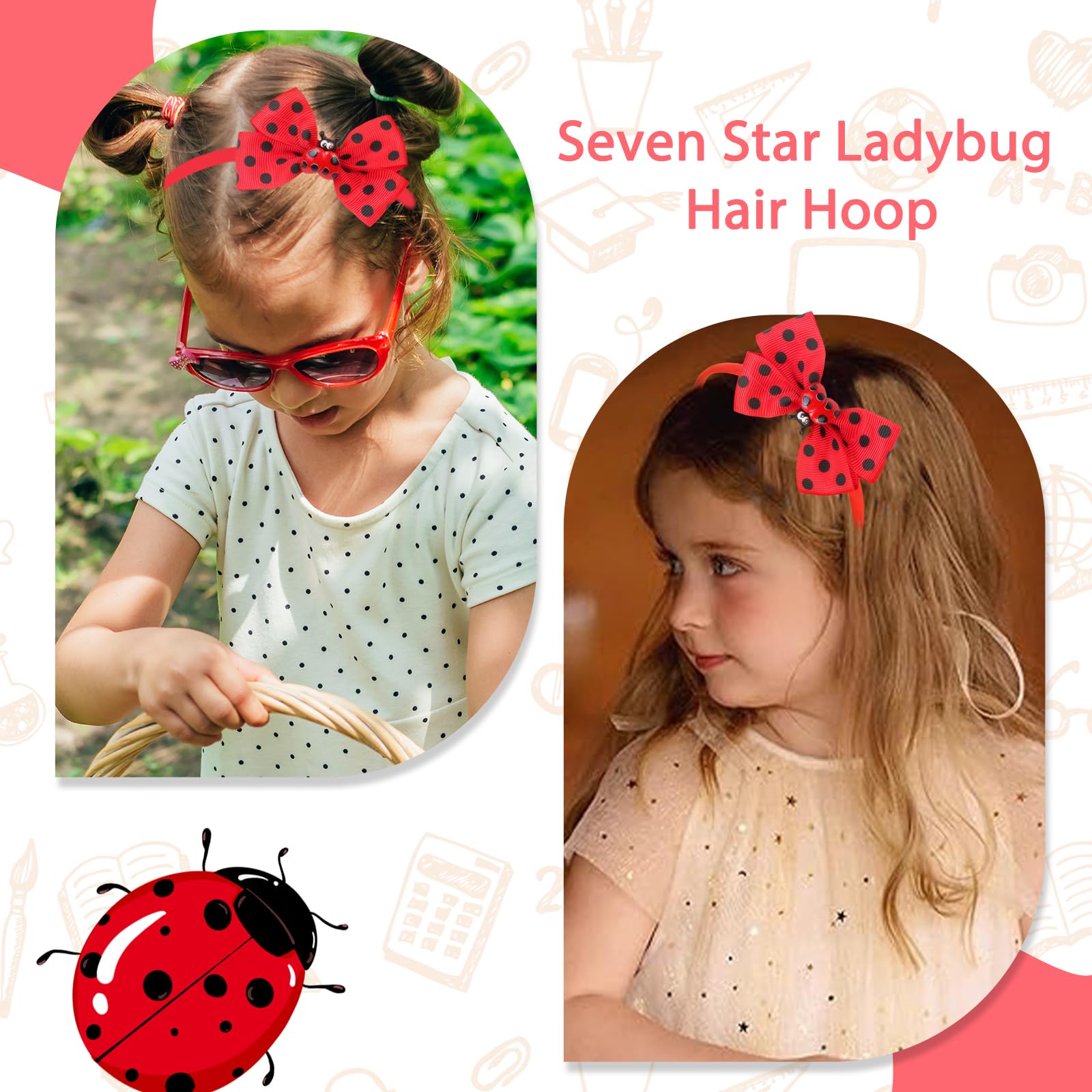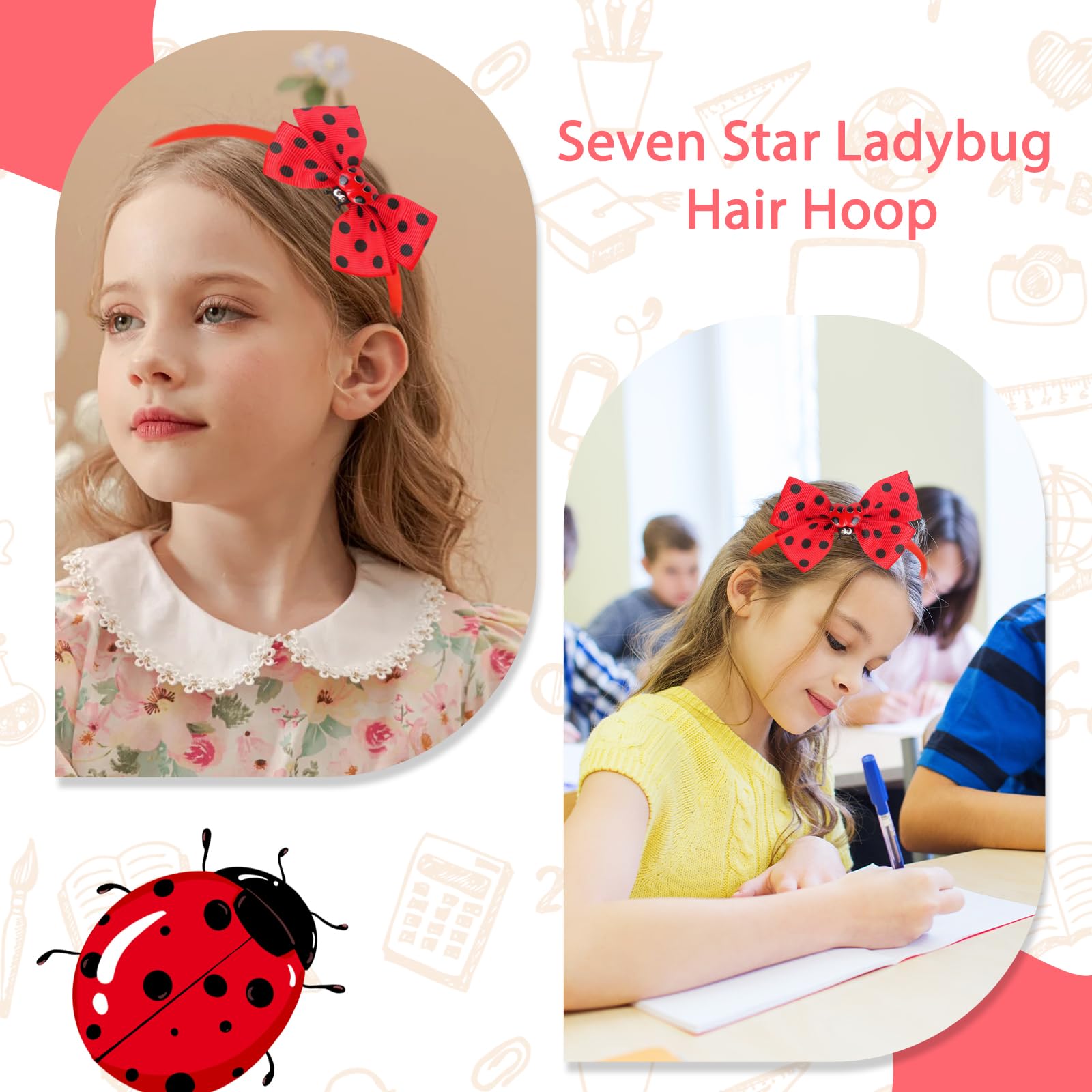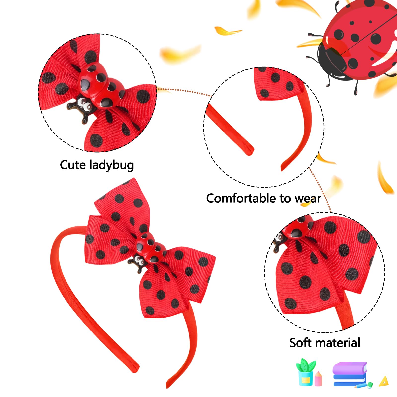 Cute Ladybug Hair Band Design: Made of fabric with alloy clips, these back to school ladybug hair accessories combine durability with a festive cheer effect. The ladybug headwear base ensure all-day comfort