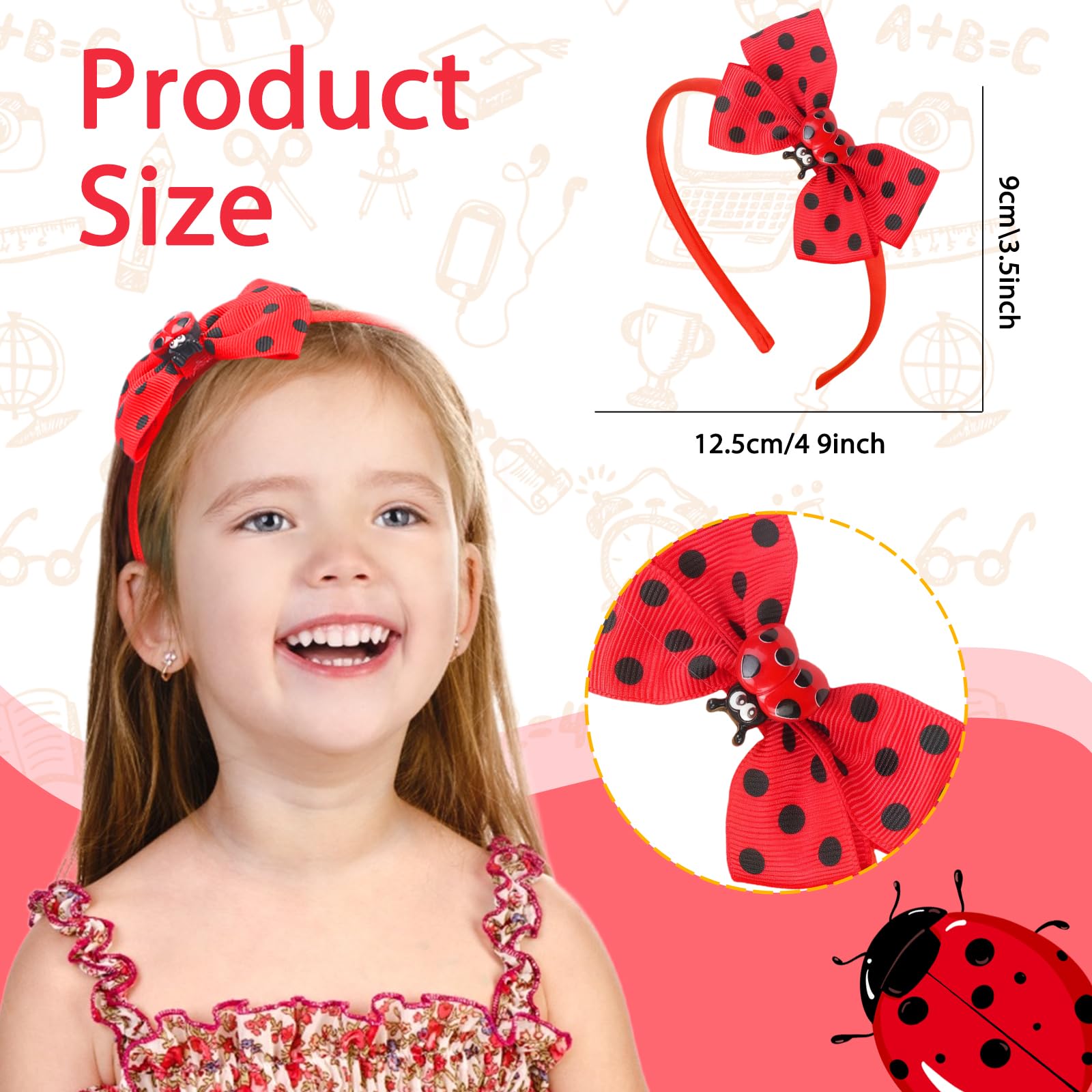 Package Including: The package offers 1pcs of ladybug headband with bow shaped. Choose these charm red ladybug hair accessories to elevate your daily hairstyles and match daily outfits or party costumes