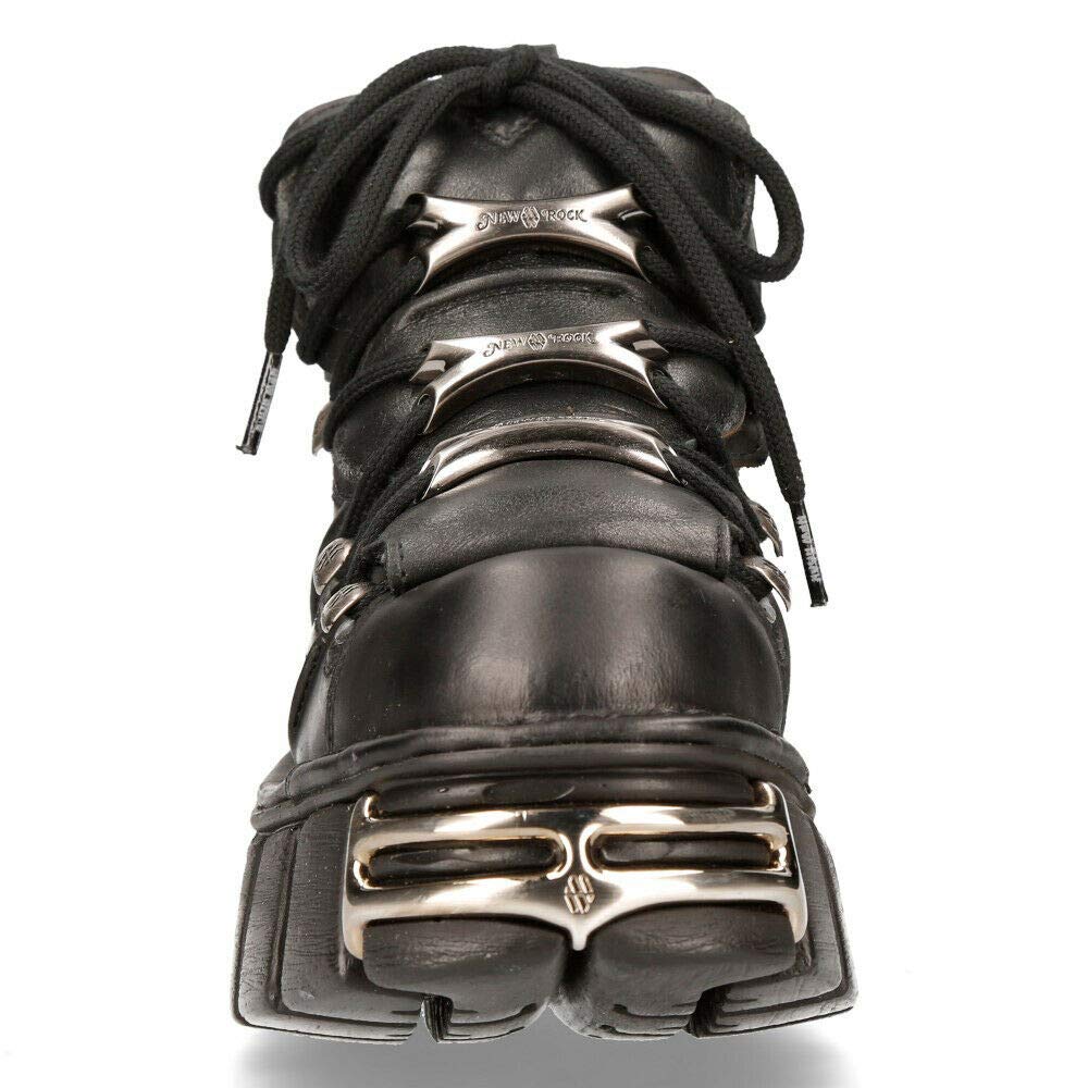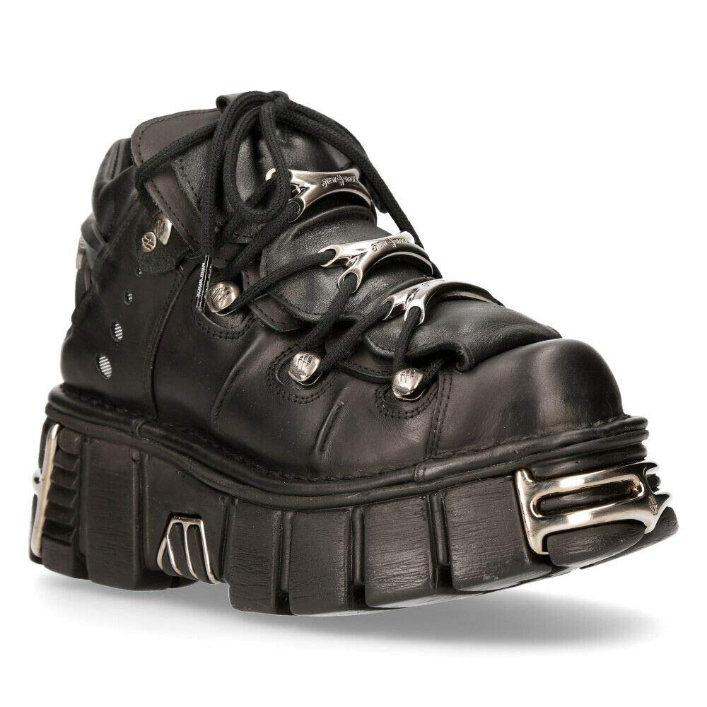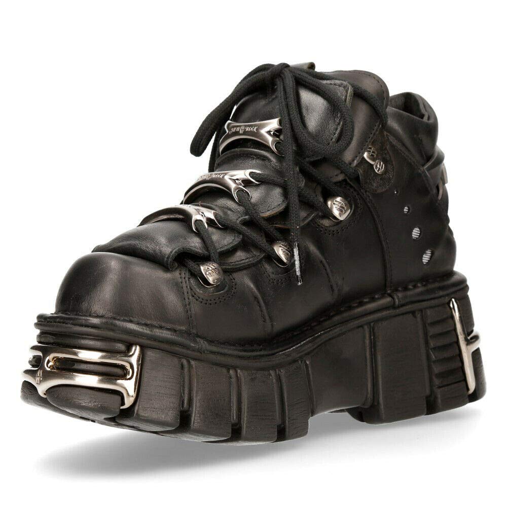 Description Introducing the Ankle Boot M.106-S1 New Rock collection. Crafted from high quality leather material the tower boots boasts a classic Gothic style blended with new punk and rock design cues. This boot is a popular staple for the New rock brand that features a lace up fastening and ankle boot finish For added style the boots includes tower heels to complete a heavy metal punk look, and the rubber soles also include Metal fittings, which is a staple for the New Rock Collection.