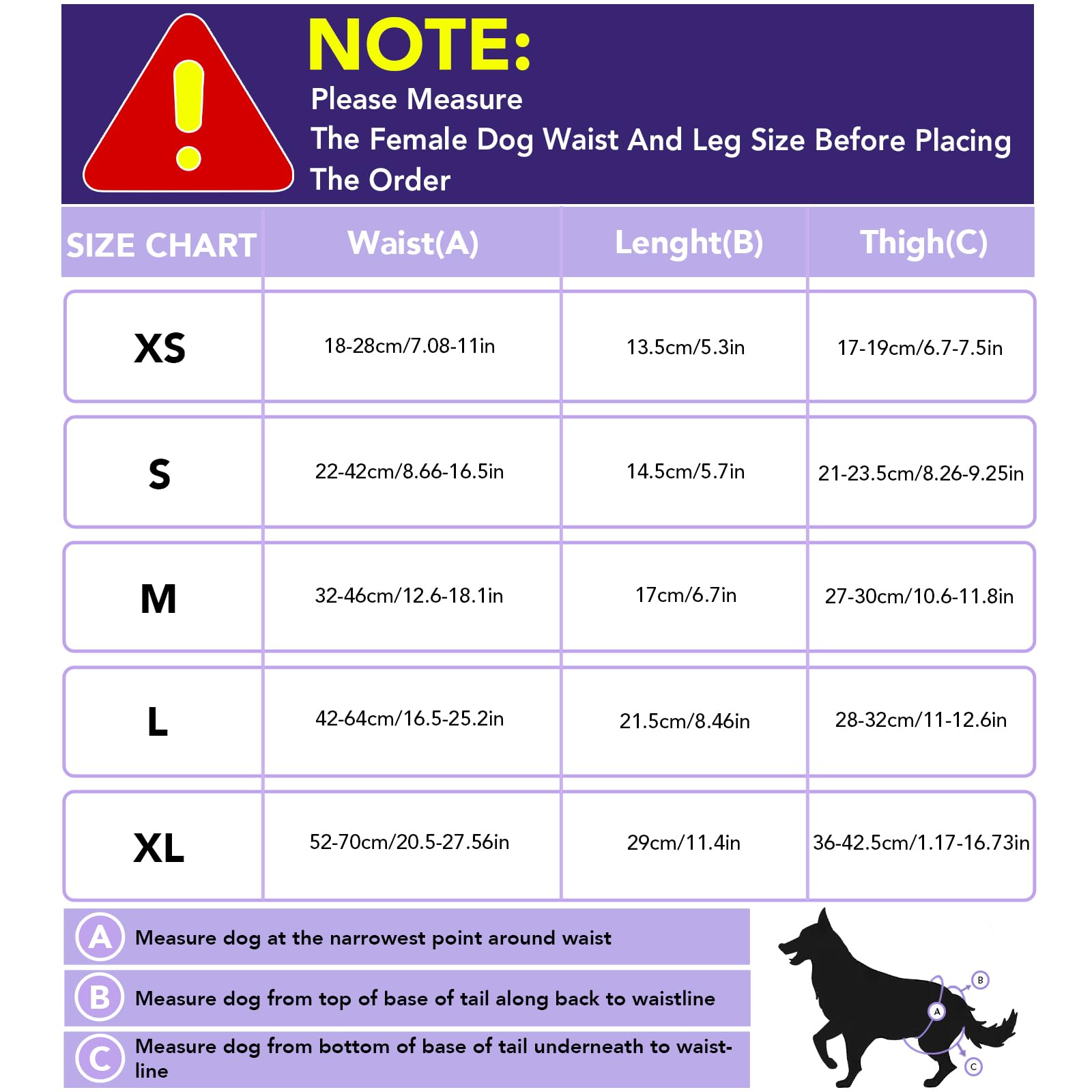 【Easy to Put On and Portable】The diaper is extremely easy to put on and take off with adjustable hook-and-loop tabs for a great customized fit. Flexible hook&loop closures don't stick to fur, more importantly, they stay on, so you can let your pet roam freely in the house without accidents!