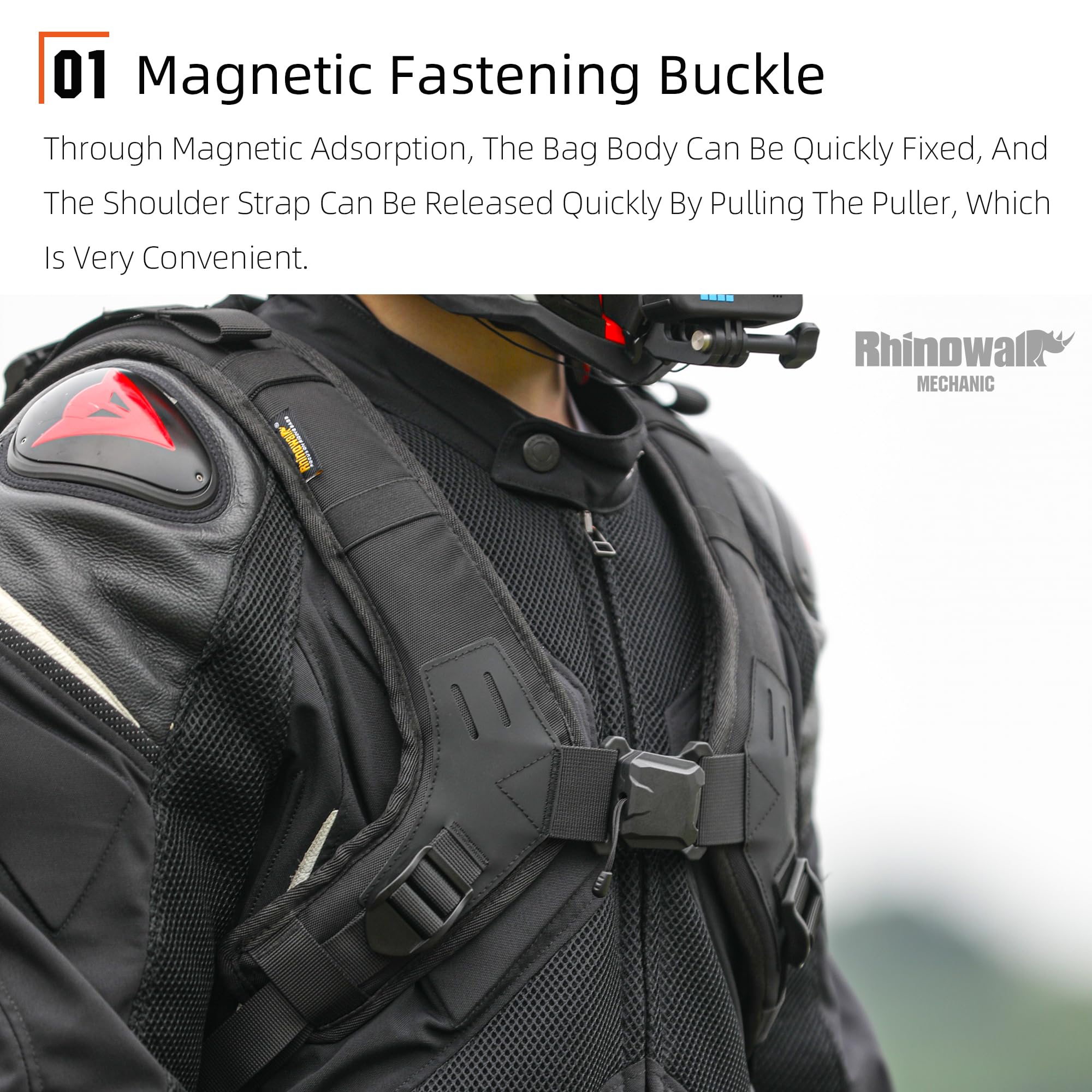 Magnetic fastening buckle: Through magnetic adsorption, the bag body can be quickly fixed, and the shoulder strap can be released quickly by pulling the puller, which is very convenient
