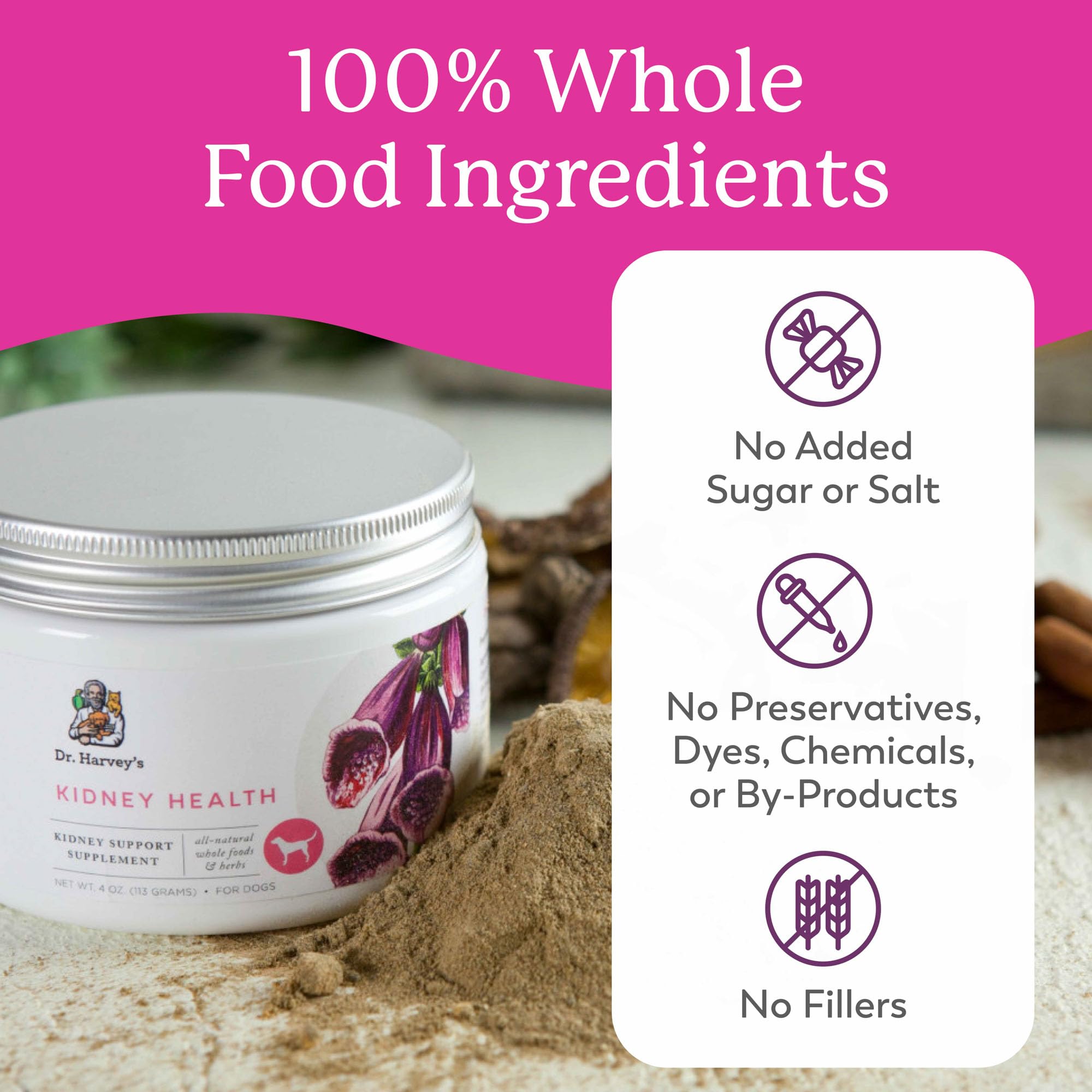 Herbal and mushroom whole food supplement designed to help support your dog’s kidneys. All natural, with NO synthetic ingredients.