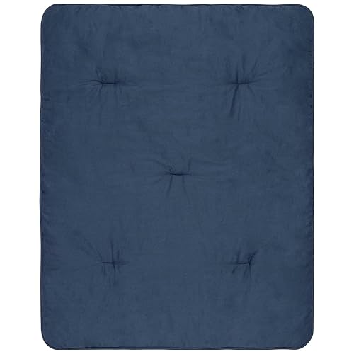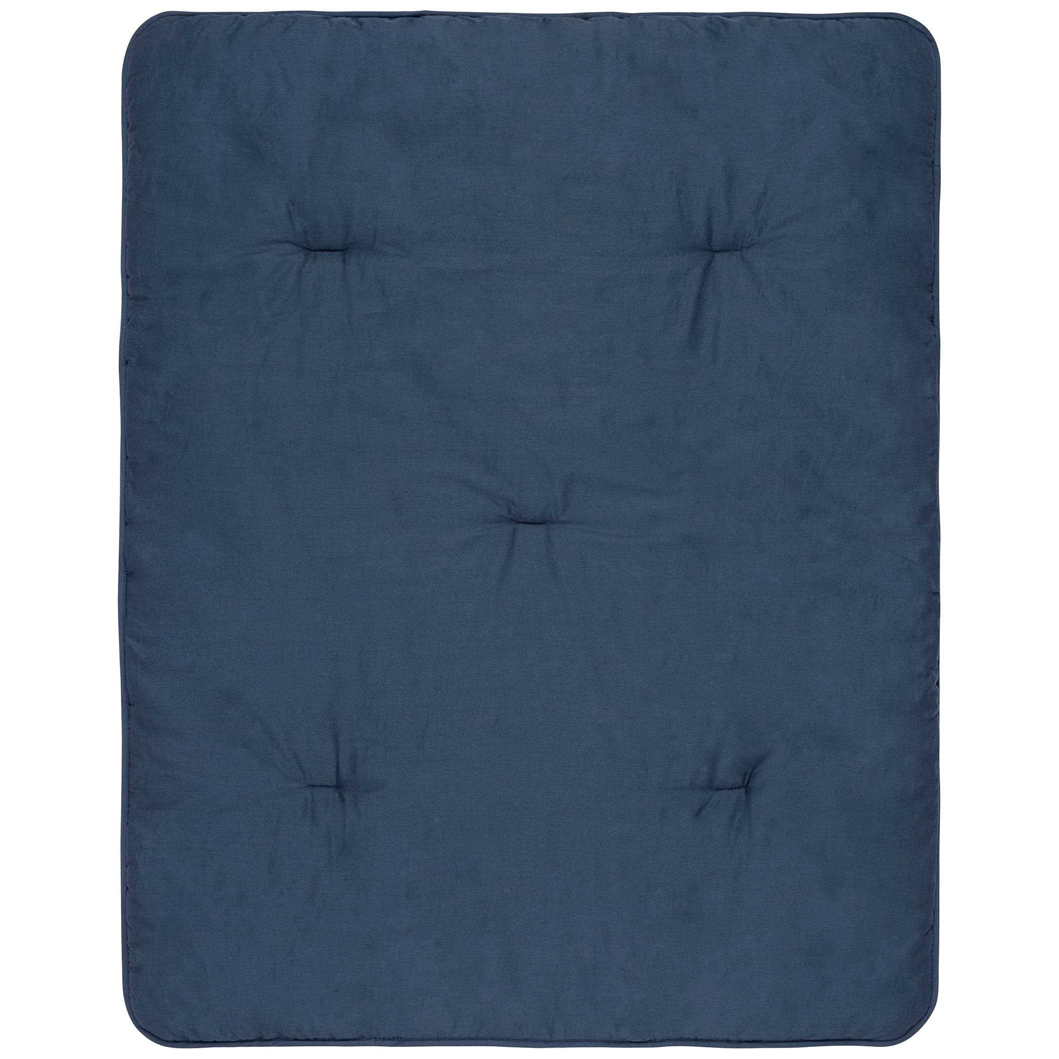 Crib skirt fits a standard crib mattress 28 in x 52 in with 13-inch drop and is a solid navy blue