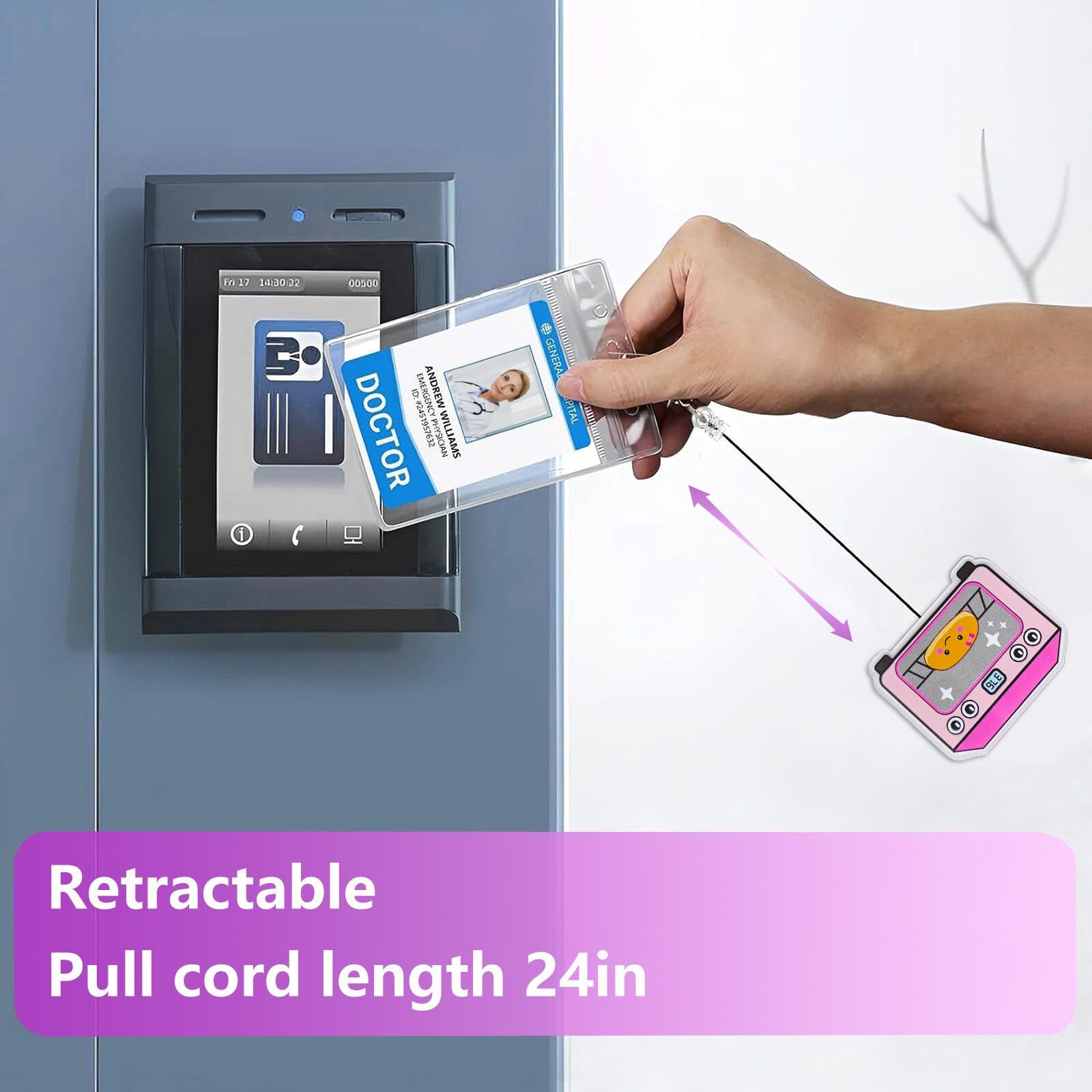 【Retractable Cord】The retractable reel cord extends a maximum of 24 inches, more than enough to reach comfortably as far as your arm can reach. The flexible retractable feature enables you to effortlessly display your badge without removing it, enhancing your efficiency at work.