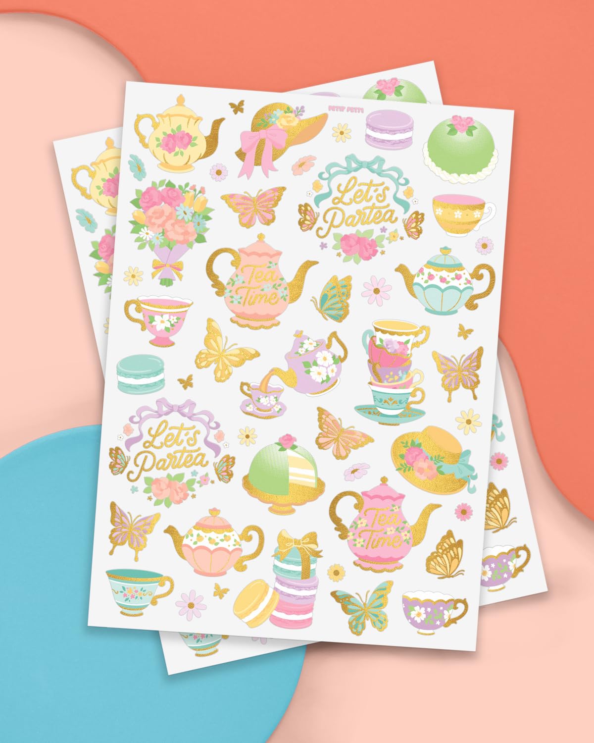 Tat up: with foil designs like tea cups, butterflies, macaroons, tea kettles, cupcakes + more. Guaranteed to be a favorite by all party guests!