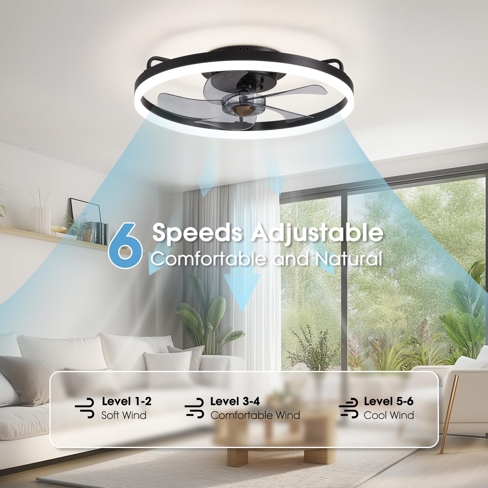 【Modern Ceiling Fans 2 in 1 Design】: Voice Control Function + 6 Wind Speeds + Timing Function + Reversible Wind + Memory Function + Dimmable LED Light. Modern low profile ceiling fan is designed with an LED light that adds to its sleek appearance, making it a great home decor item.
